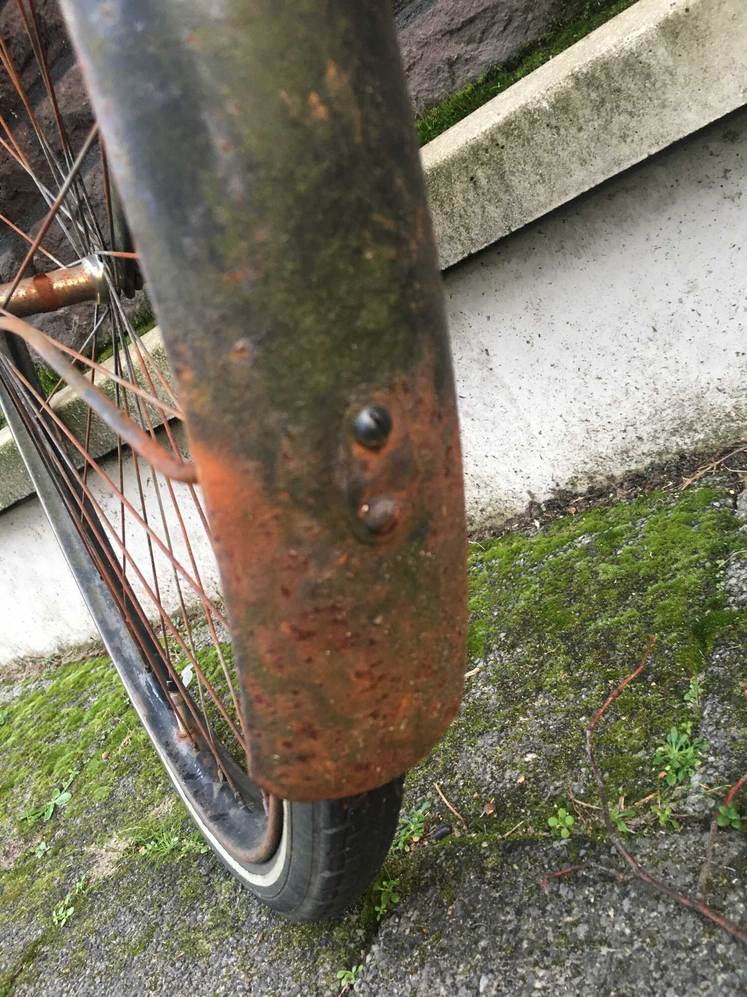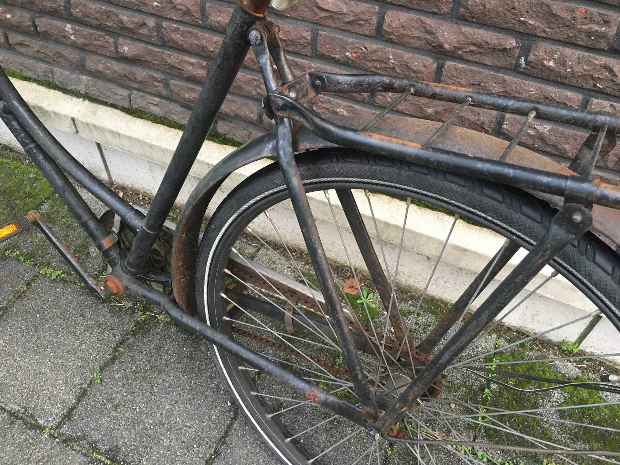 Nog zoiets; de achtervork heeft exact dezelfde mate van verweerdheid als de rest van het frame, maar ik verwacht een typische dikke Simplex-achtervork op deze fiets, maar het is een dunne. Misschien ook een kenmerk dat verwijst naar de oorlogsjaren?