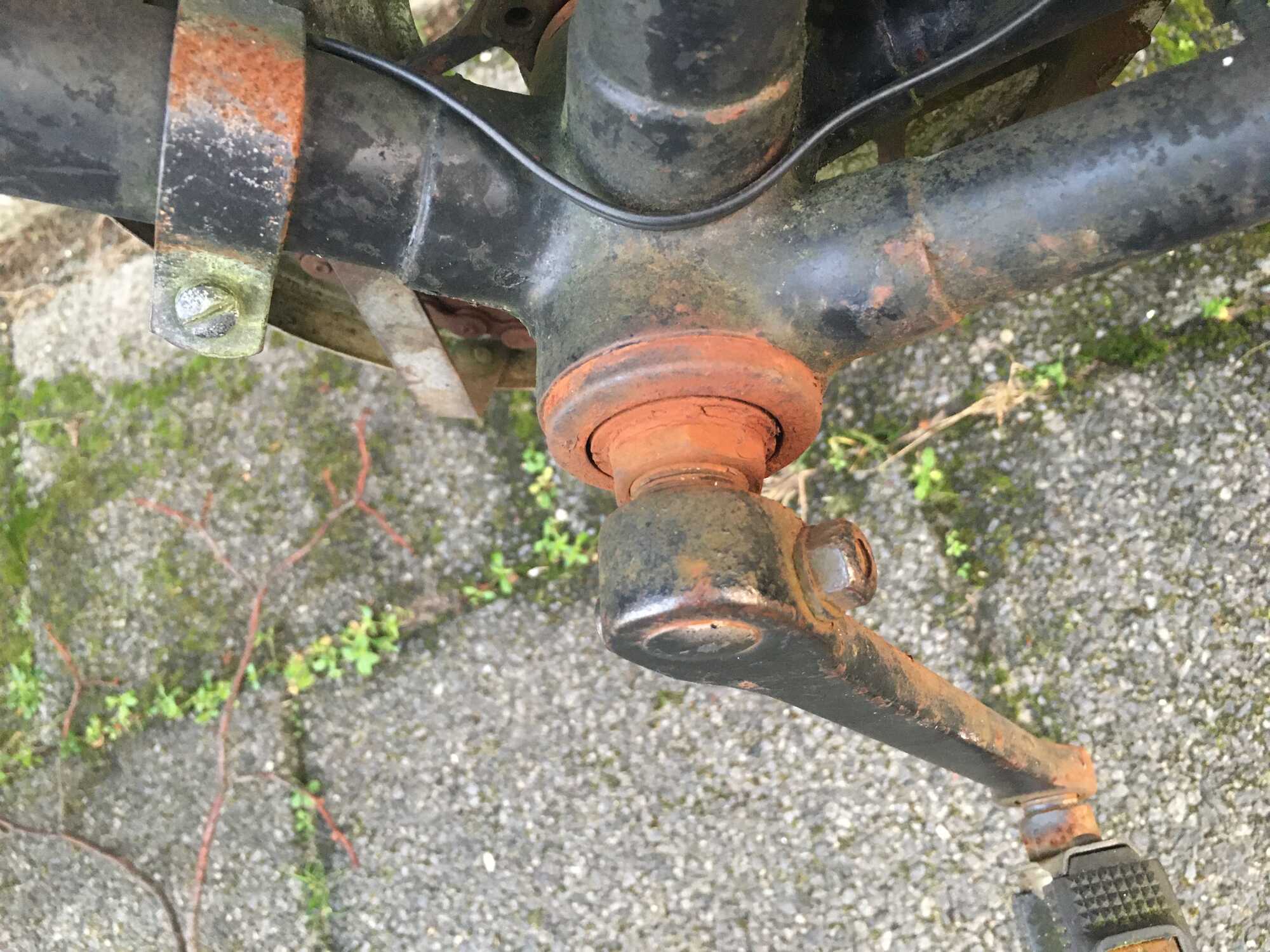 A-typisch balhoofdstel, vervangen ooit? Of door schaarste iets algemeens moeten monteren. Geldt hetzelfde voor de spatborden. Ze hebben wel een massief spatbord-stangetje en het lijkt alsof ze speciaal geponst zijn voor dit typestangetje.