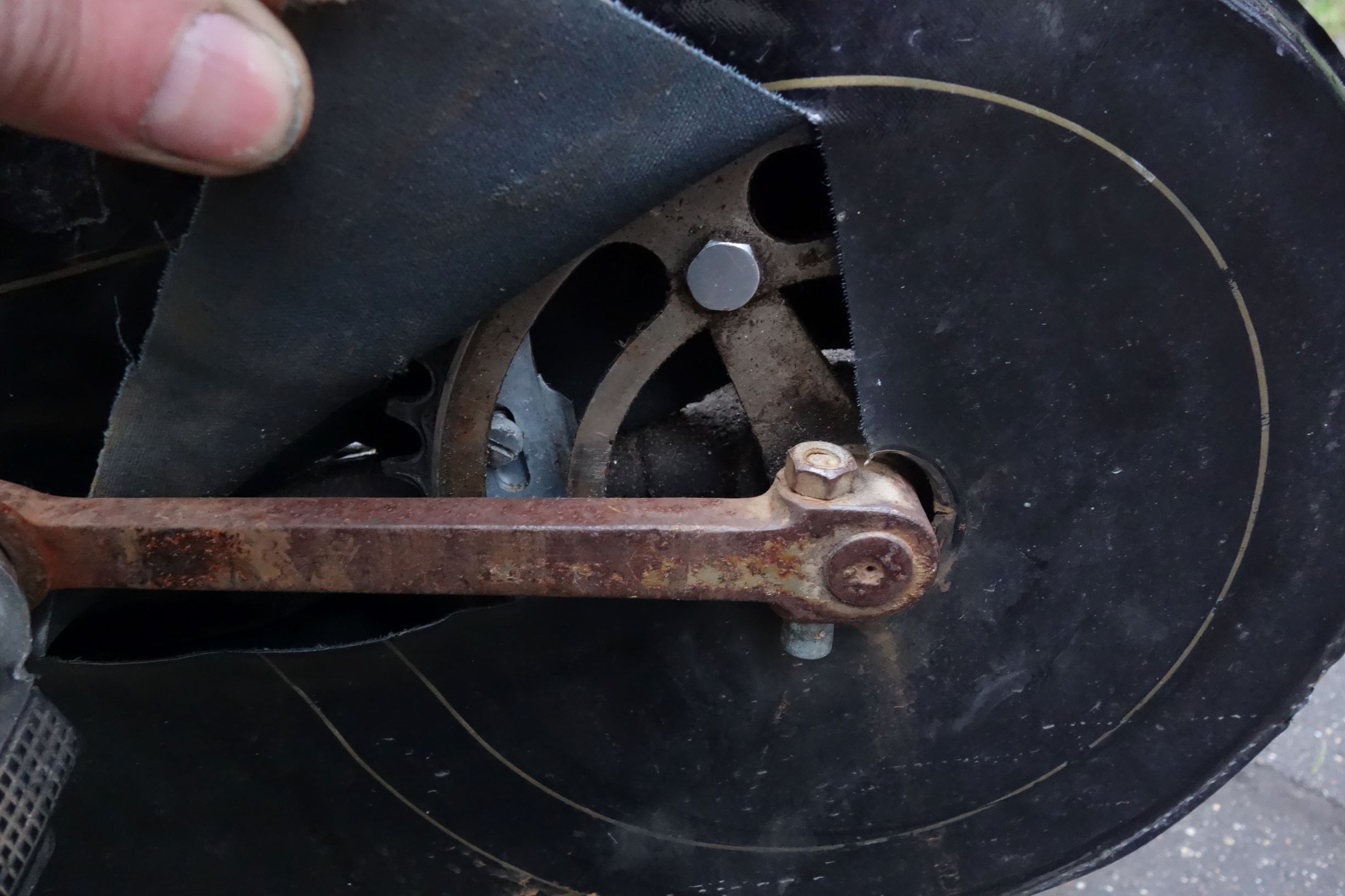 Opmerkelijk is dat de remhevels een plaat met schroefdraad en moertje hebben in de handgrepen.