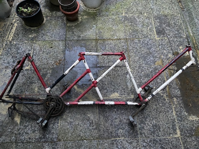 Hierbij een foto van het frame voordat ik de rode en witte lagen er van af geschraapt heb.