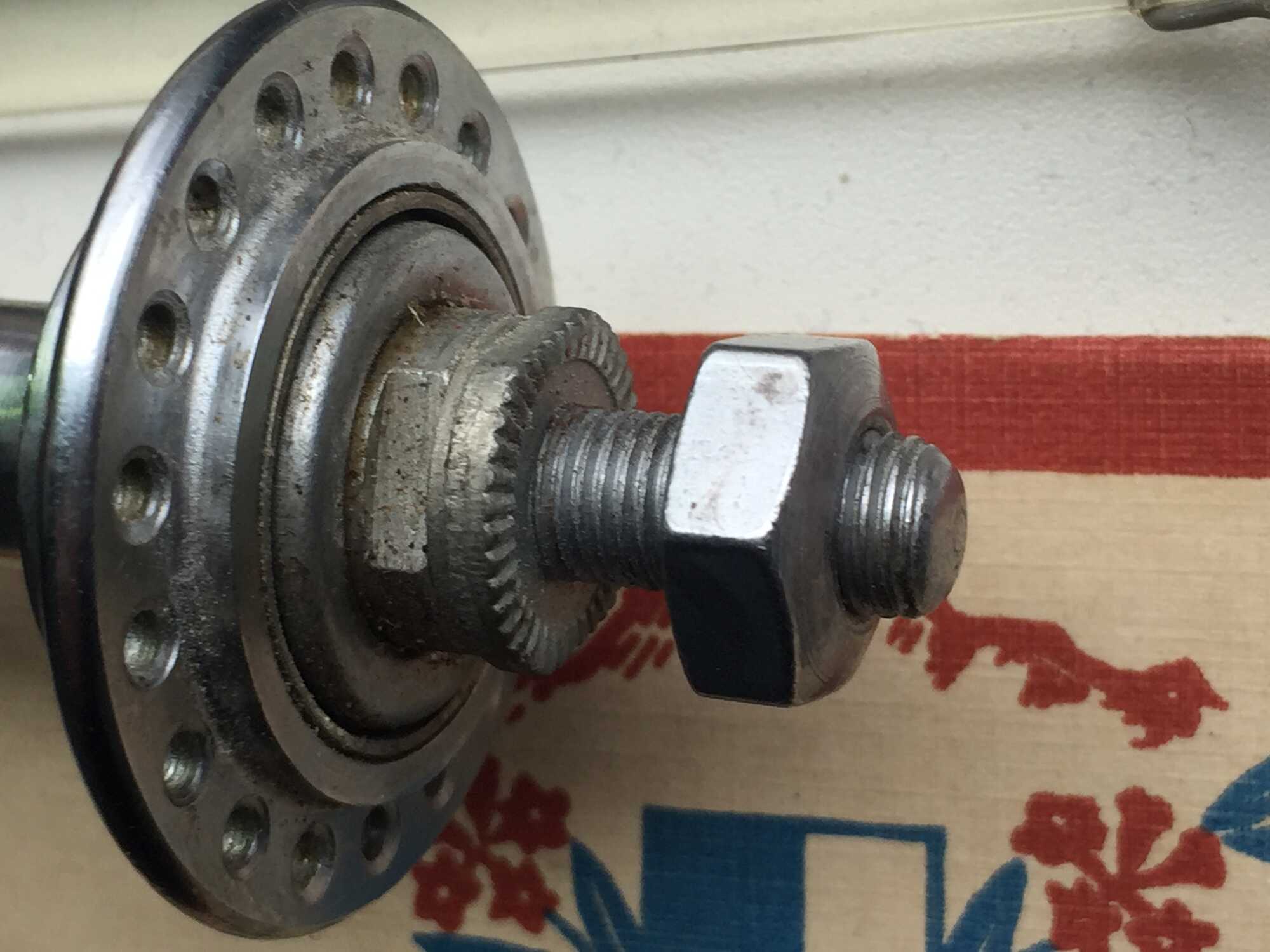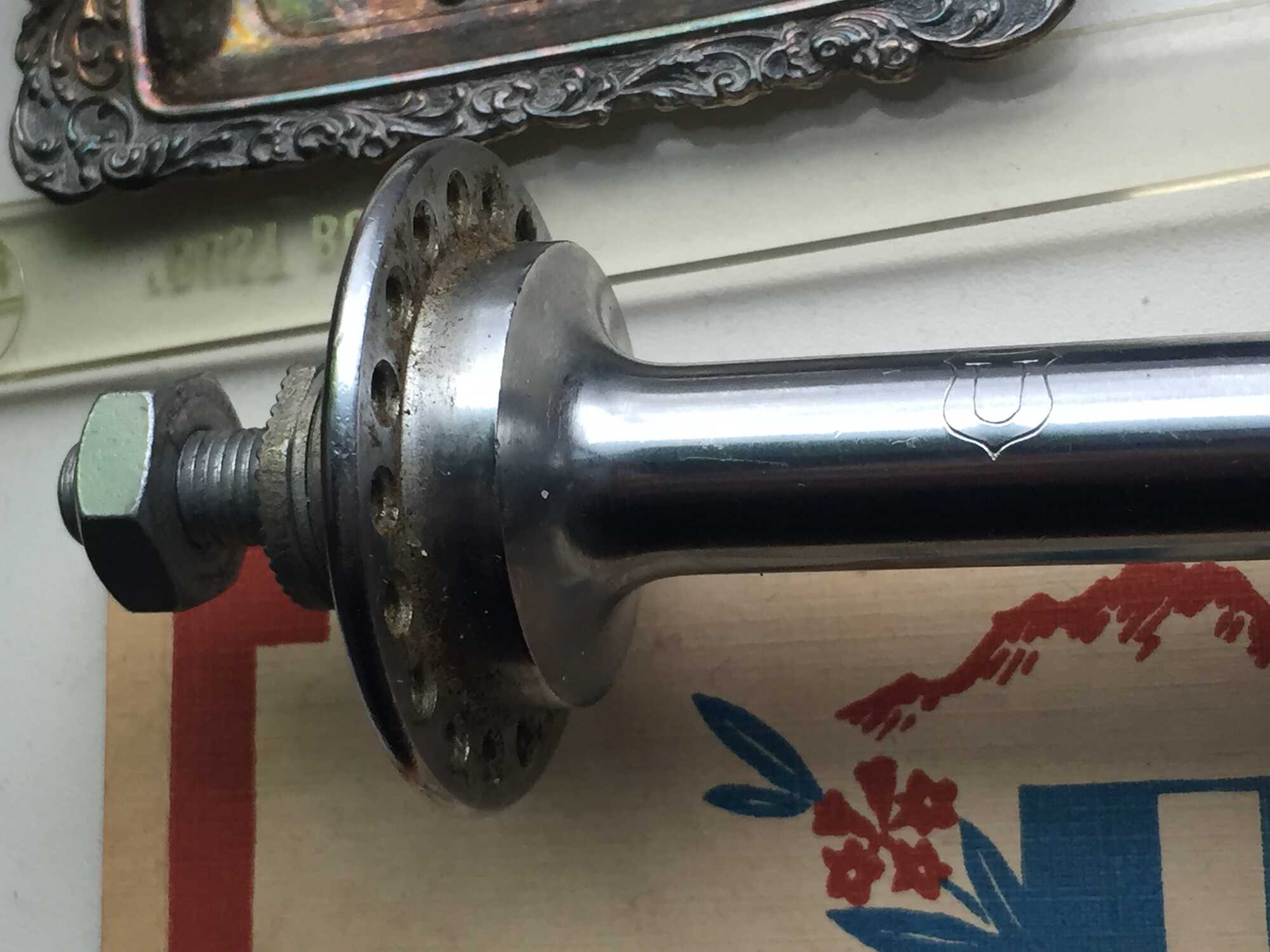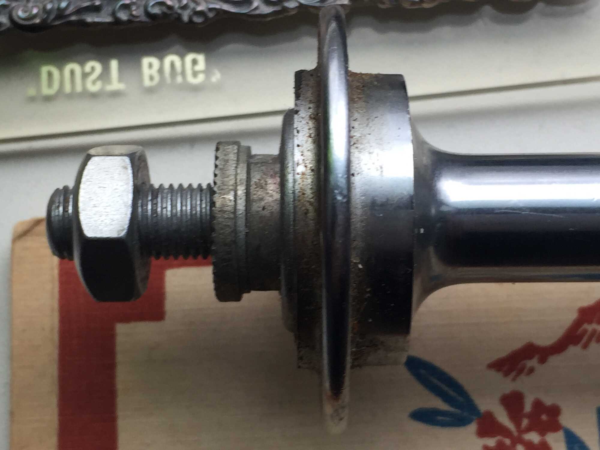 Het chroom op de flensen is een beetje aangetast maar verder nog mooi. De uiteinden van de as zijn ook verchroomd.