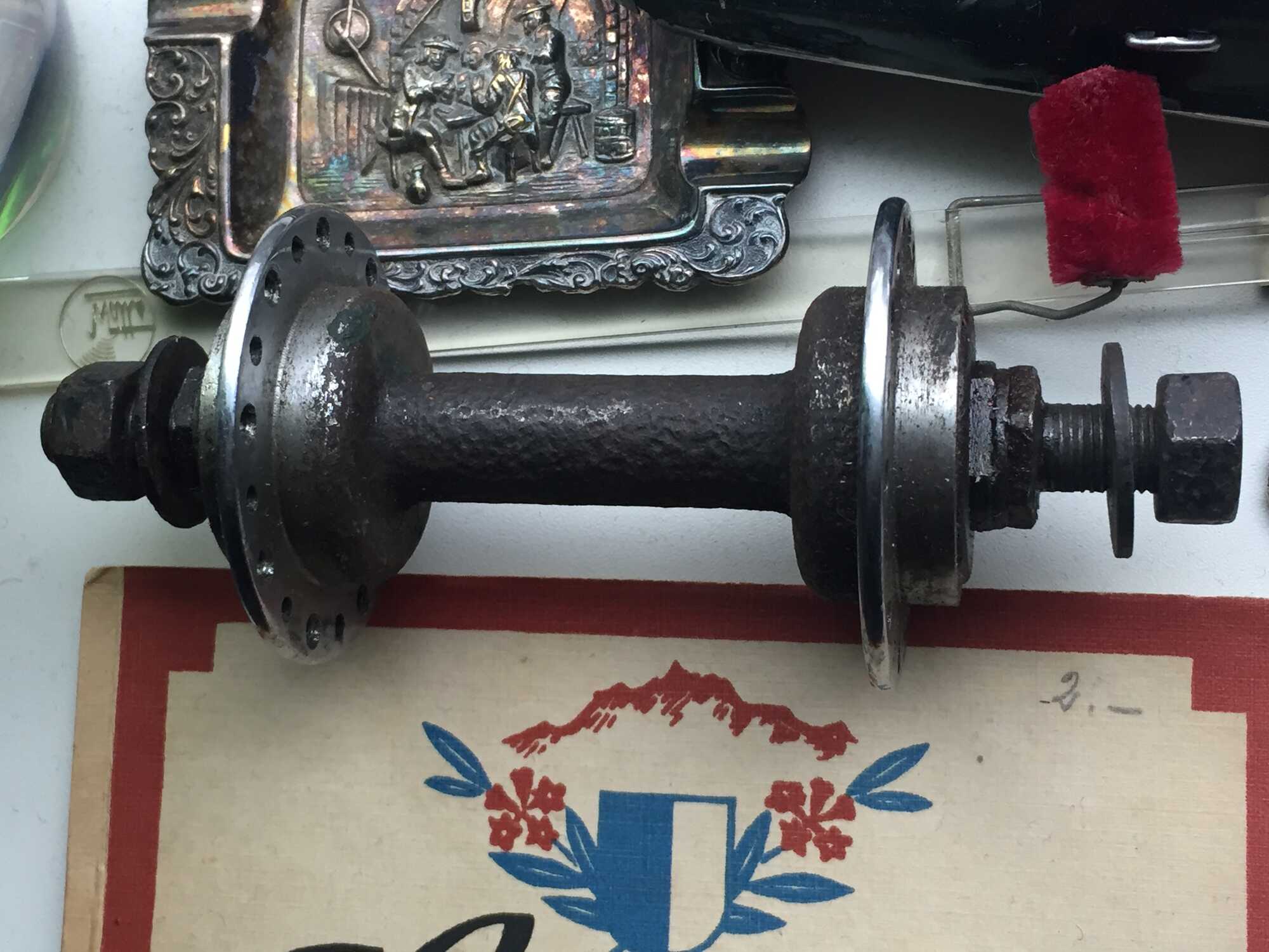 De derde naaf heeft geen stempel maar het komt van een Germaan. Ik heb vaker fietsen van dat merk gezien met zo’n naaf dus ik neem aan dat het ‘een Germaan’ is.