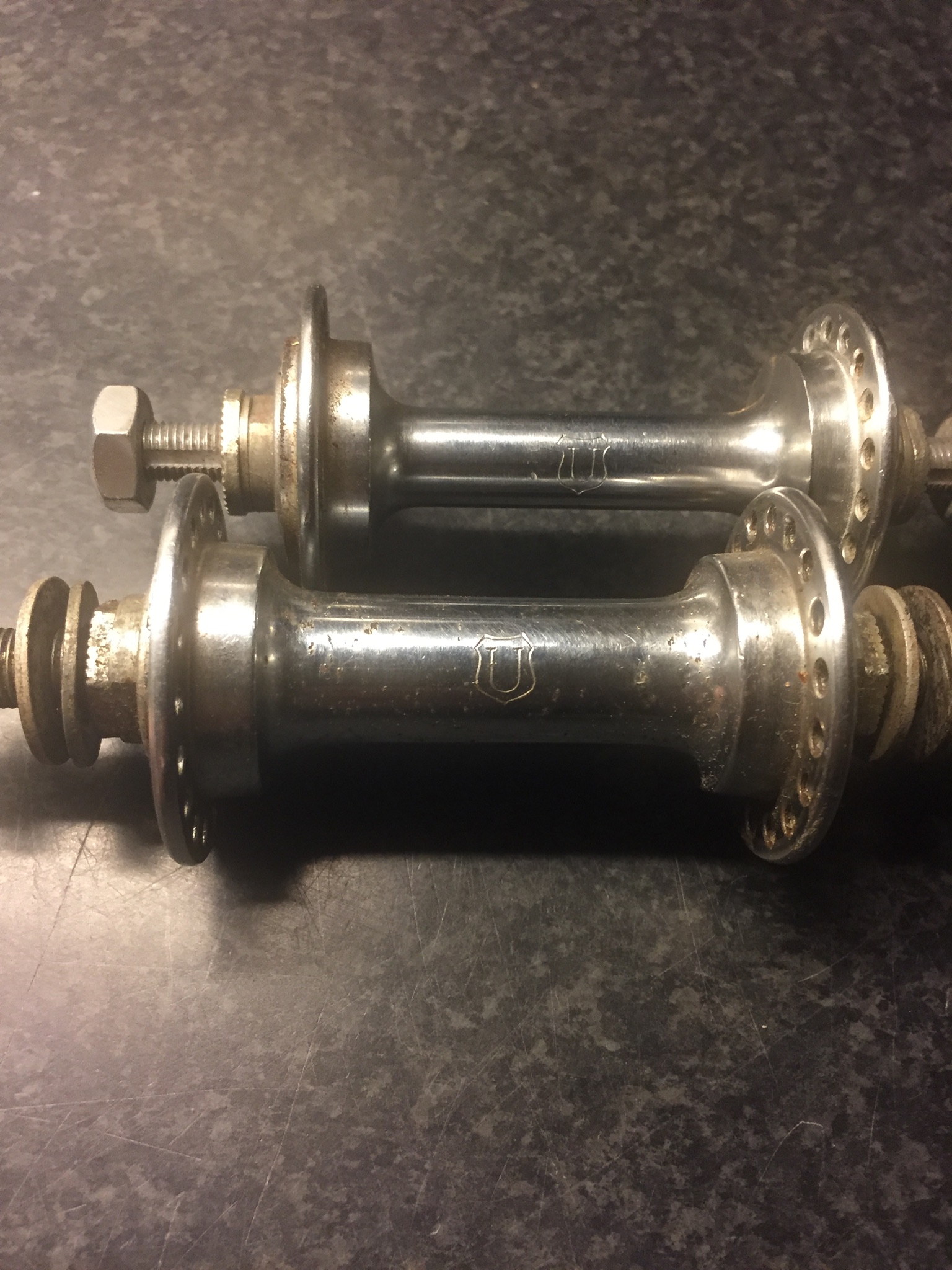 Ik heb hier drie voornaven voor toerfietsen waar ik geen bestemming voor heb dus die mogen naar een andere eigenaar.