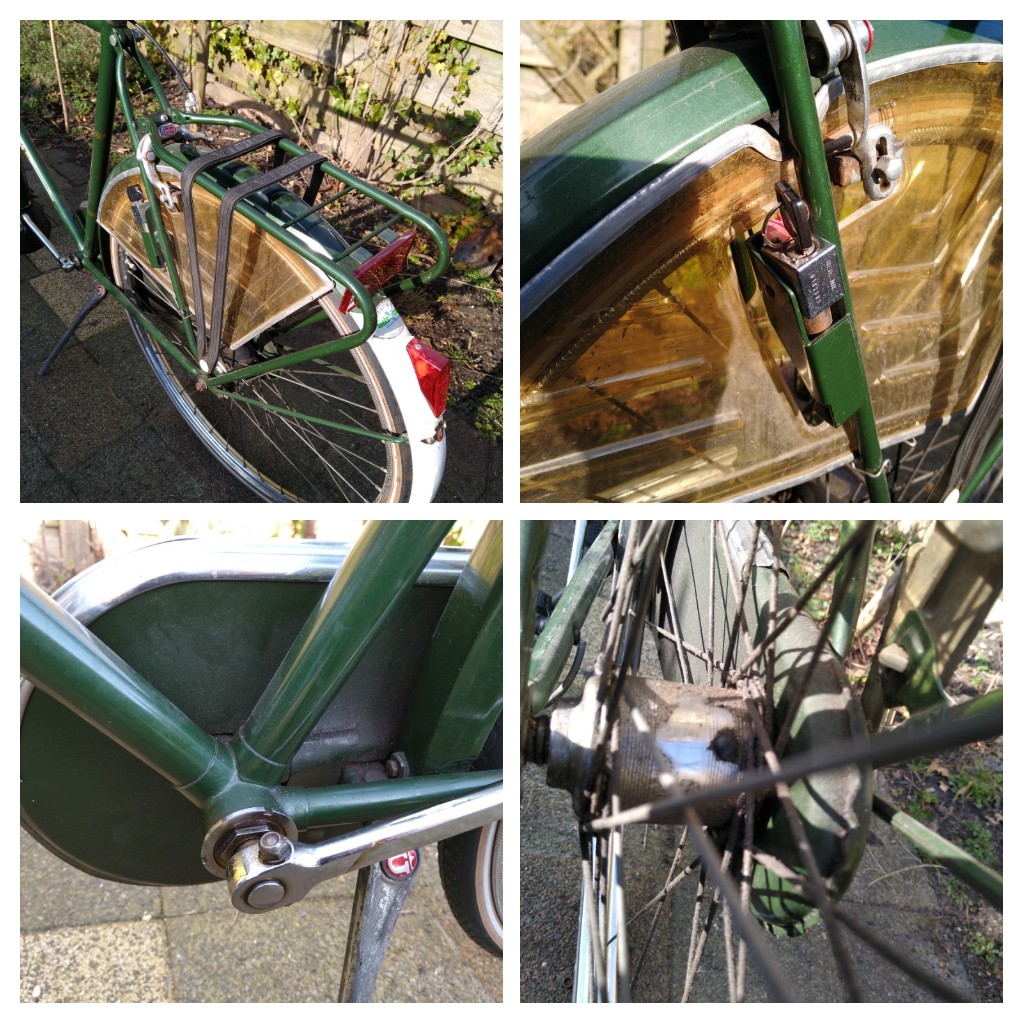 Fiets Heeft vrijwel ze hele leven in een verwarmde ruimte gestaan en is daardoor roestvrij, En is ook zeer weinig gebruikt. Helaas is het vet in de nodige onderdelen wel volledig uitgedroogd en staan beide remmen vast en ook het schakelmechanisme staat vast, Verder is er een spaak kapot.