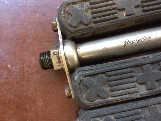 Prachtige pedalen, in deze staat erg zeldzaam ook. Ik heb deze blokken ook ooit op andere pedalen dan Gazelle gezien, maar kan me niet meer herinneren wat dan wel. Opvallend is dat deze ook nog andere dopjes hebben. Ik had ooit een set damespedalen in nikkel met het oude type inslag, maar die hadden al de latere dopjes. Daardoor rees bij mij de vraag of in dit geval 11 0 niet ook nov. 1930 kan zijn?