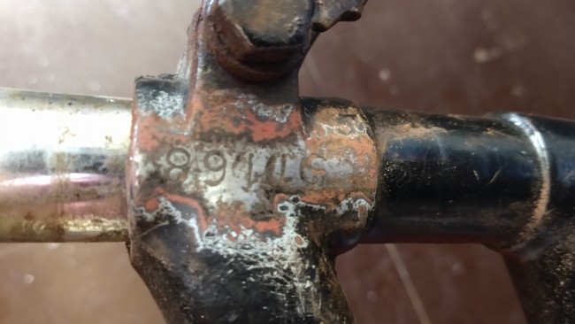 Ik denk, dat de fiets ooit al eens is overgeverfd / gerestaureerd.