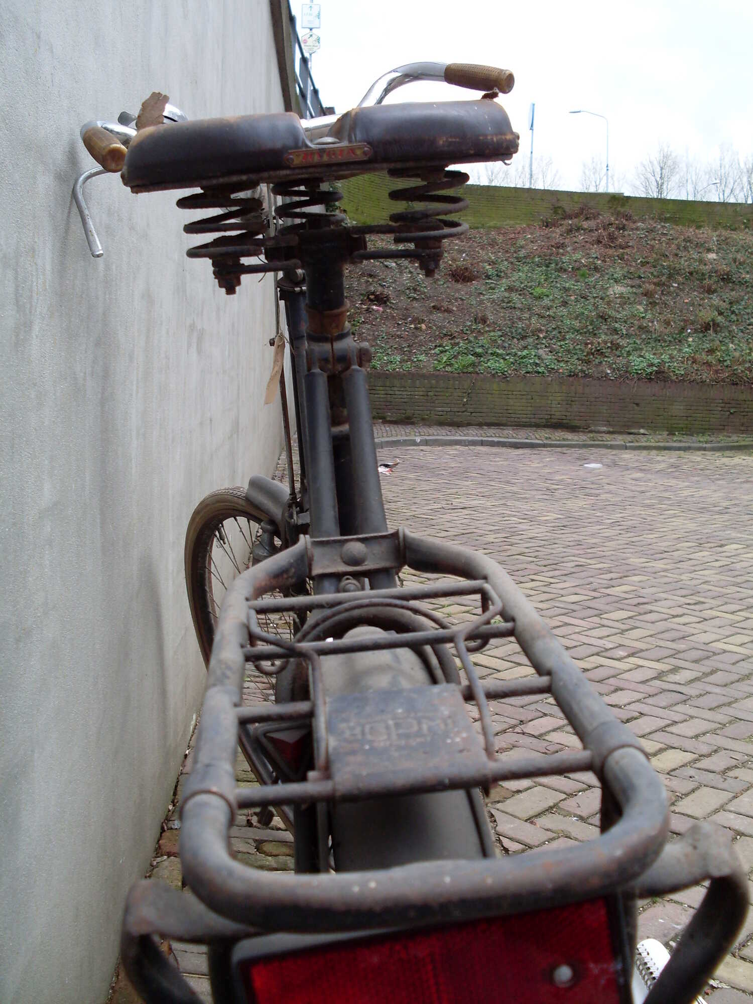 1. Ooit zat er het remsysteem op met de nokjes op de voorvork en staande achtervork gelast. Bij de achterste nokjes 'hangt' zelfs nog een onderdeel van het originele remsysteem.