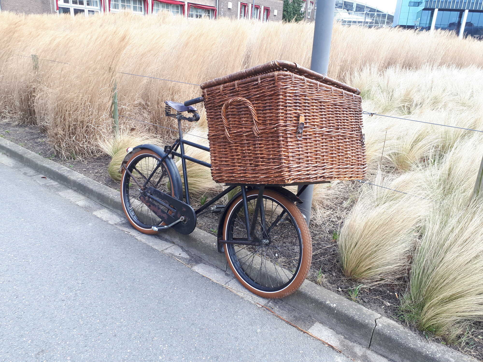 Kennelijk een plek in Leiden waar ik nooit kom, want ik heb hem niet eerder gezien. En jup, dat is de grootste mand op een fiets in Leiden en omstreken. Groter kan haast niet