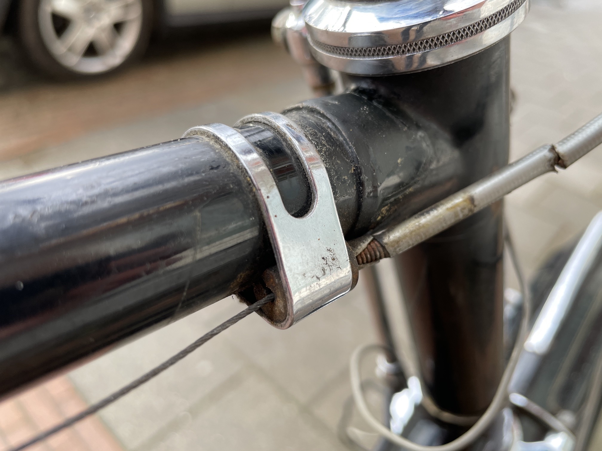 Om te beginnen hoop dat jullie me kunnen helpen met bepalen wat er origineel is aan de fiets in z'n huidige staat, en wat er juist ontbreekt. Twee dingen die me zelf al opvallen: