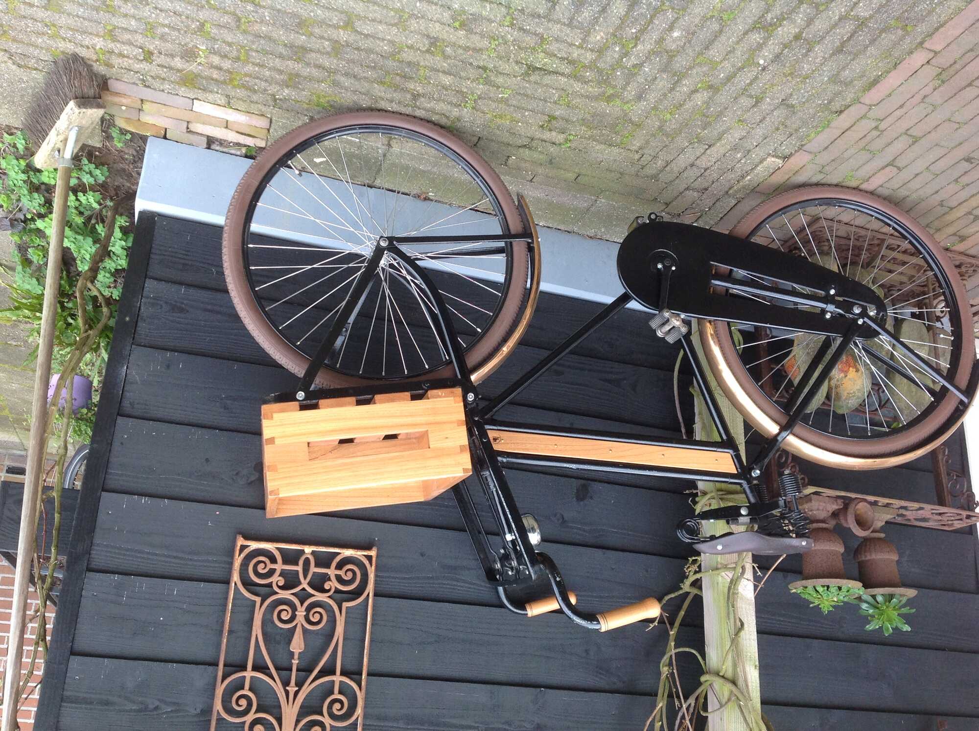 Het hout tussen de bovenbuizen? Ik ken wel stalen platen die daar werden geplaatst voor reklame doeleinden. Zie bijvoorbeeld: https://www.transportfiets.net/wp-conte ... 1928_3.png