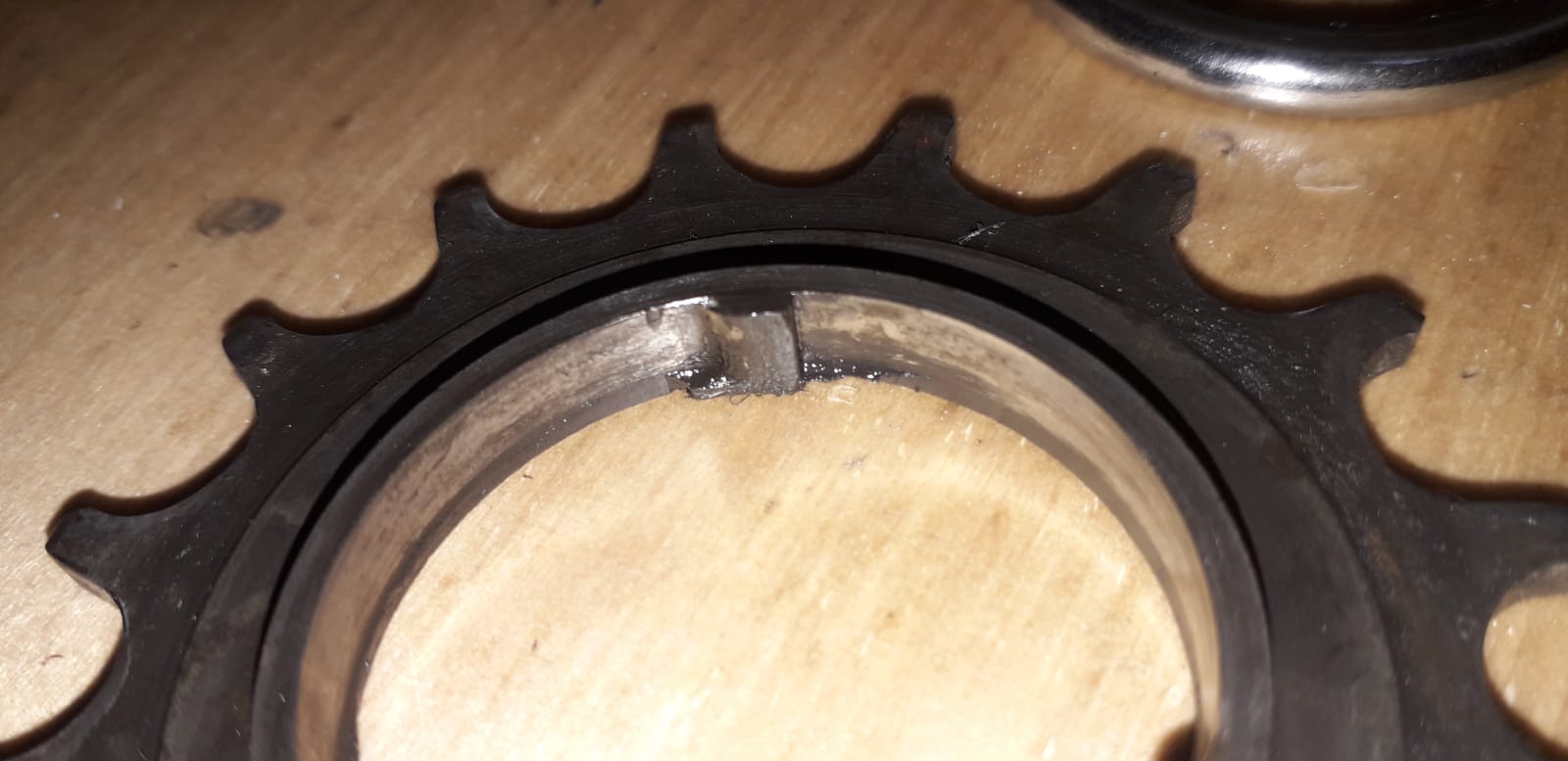 het mordrne tandwiel past er niet op de drijfkop is net een halfe mm breder