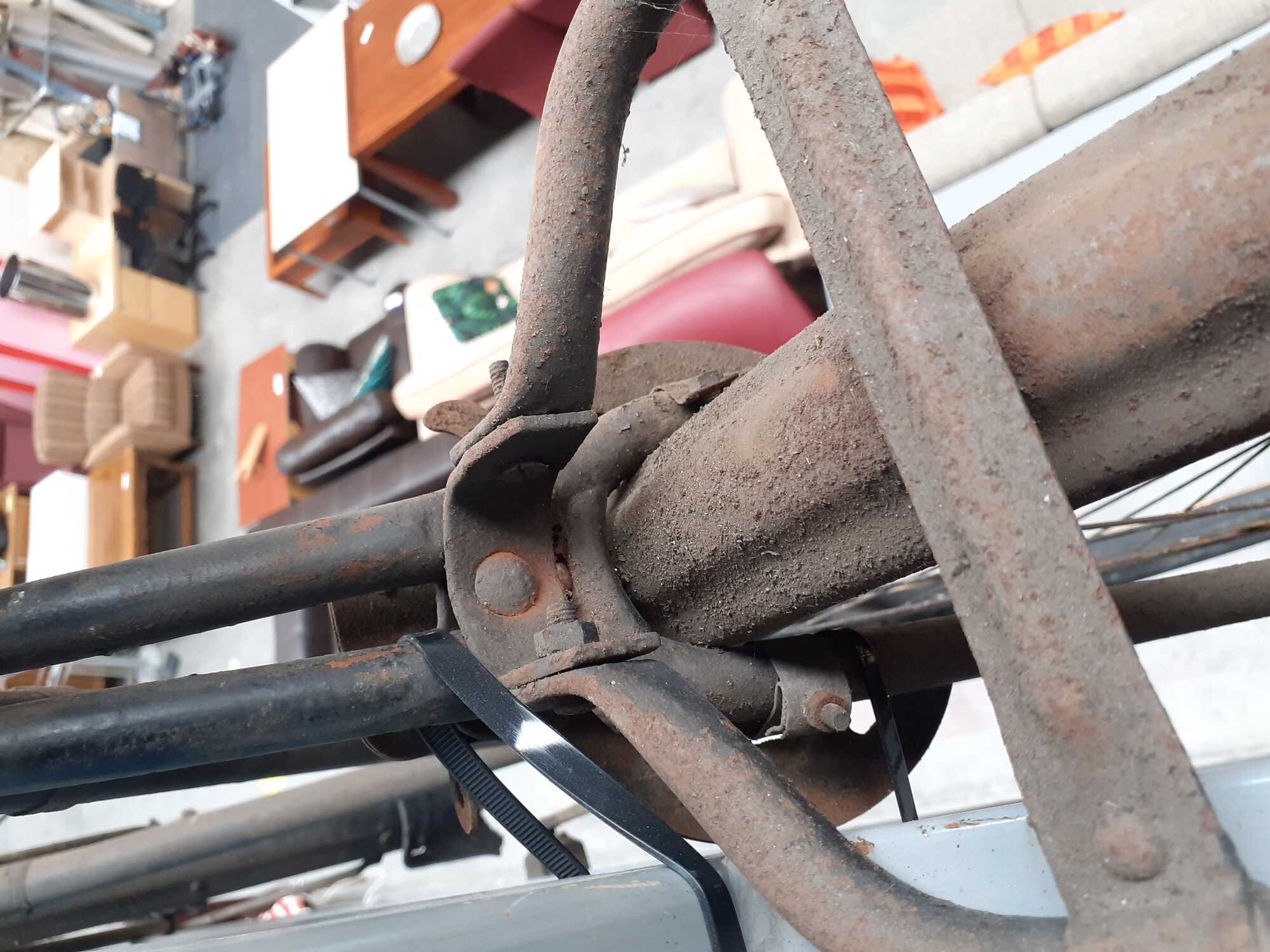 Helaas zit de zadelpen nog in de buis en is afgezaagd ter hoogte van de lug
