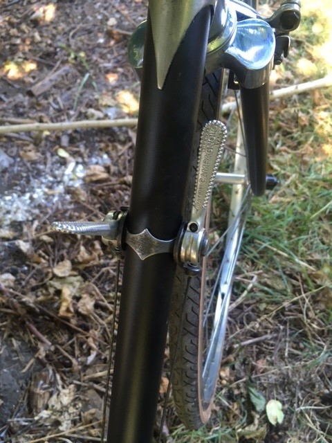 Ik kreeg enige tijd terug van een vriend een oude sportfiets die ik inmiddels ben aan het opknappen en in verse lak heb gestoken. Het is geen echte racer, want er zit geen derailleuroog aan, en ook zijn zowel de voorvork als de' achtervork voorzien van "spatbordoogjes" (of hoe heet dat?). De bracket is blijkbaar Italiaans van maat, en de fiets is ook met Campagnolo (Valention Extra, een goedkopere jaren zestig set), ttt en Universal remmen afgemonteerd, dus ik vermoed dat ik in Italiaanse richting moet zoeken. Ik vind nergens enige indicatie van framenummers of benamingen, en ook was er niks van stickers, labels of kopmerk te vinden toen ik de fiets kreeg. Iemand suggereerde me dat de lugs Cinelli van zouden zijn. De aanhechting van de staande achtervork is ook nogal kenmerkend (boven torpedovormig afgewerkt en zijdelings aan de zadellug gesoldeerd). Ik zag dat ook bij een oude Ganna-racefiets...