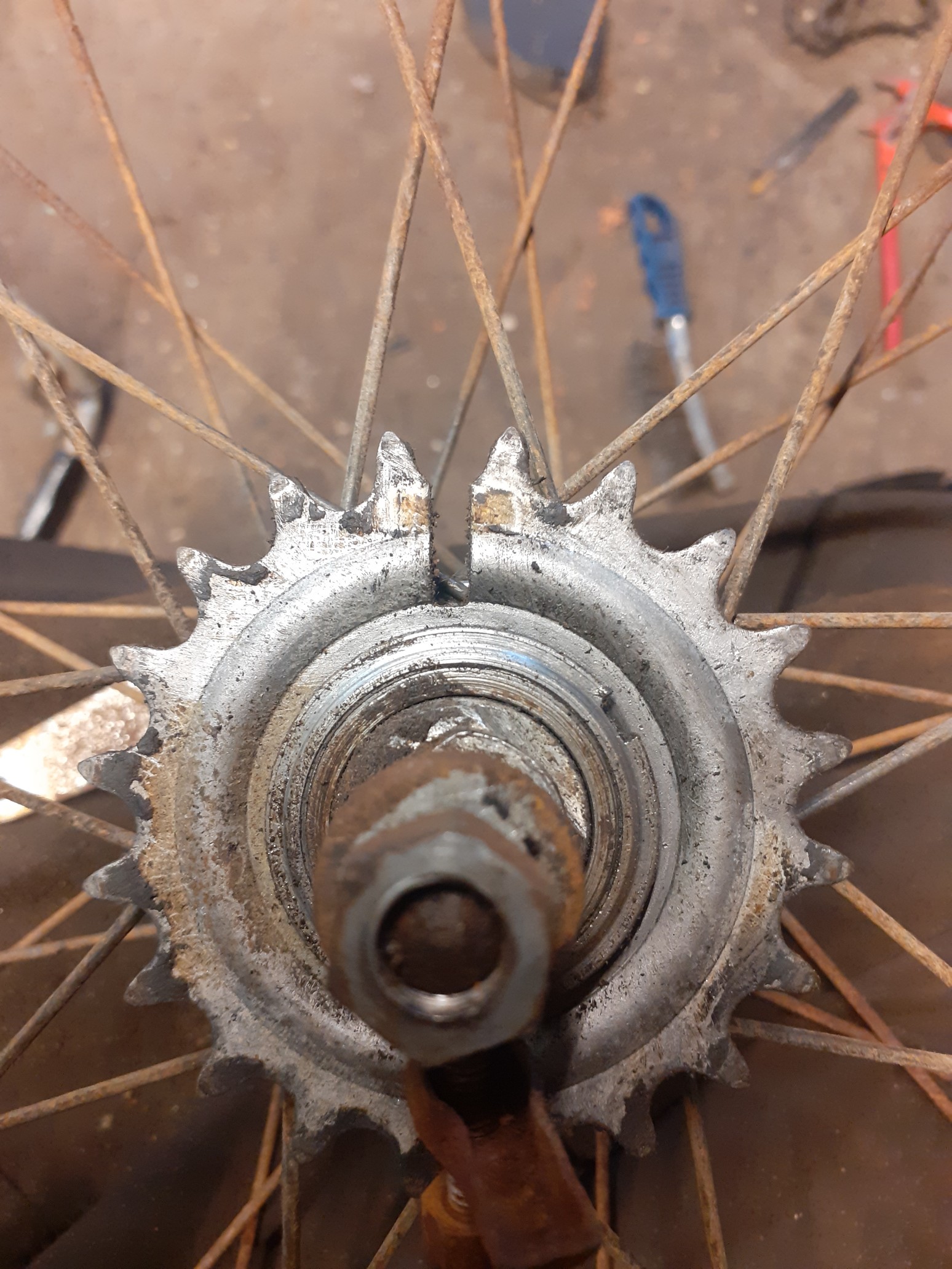 Ik zie voor het eerst een achtertandwiel met een 'zaagsnede'; en vind het een beetje