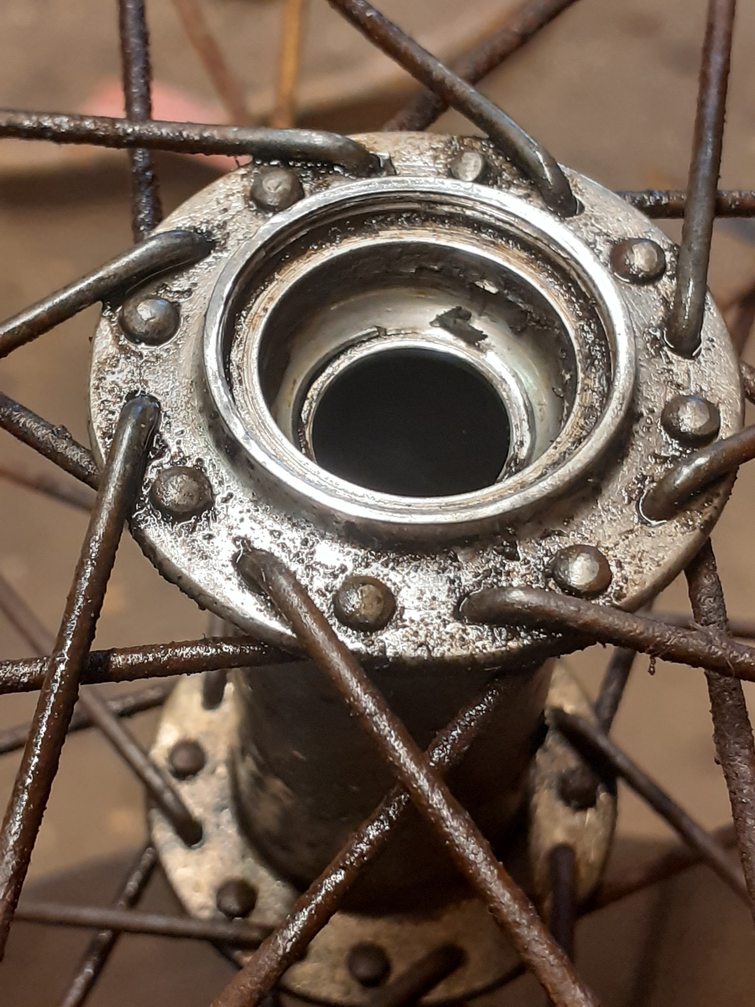 Maar de voornaaf . Heeft die schroef stofkappen? En 32 spaken tel ik.