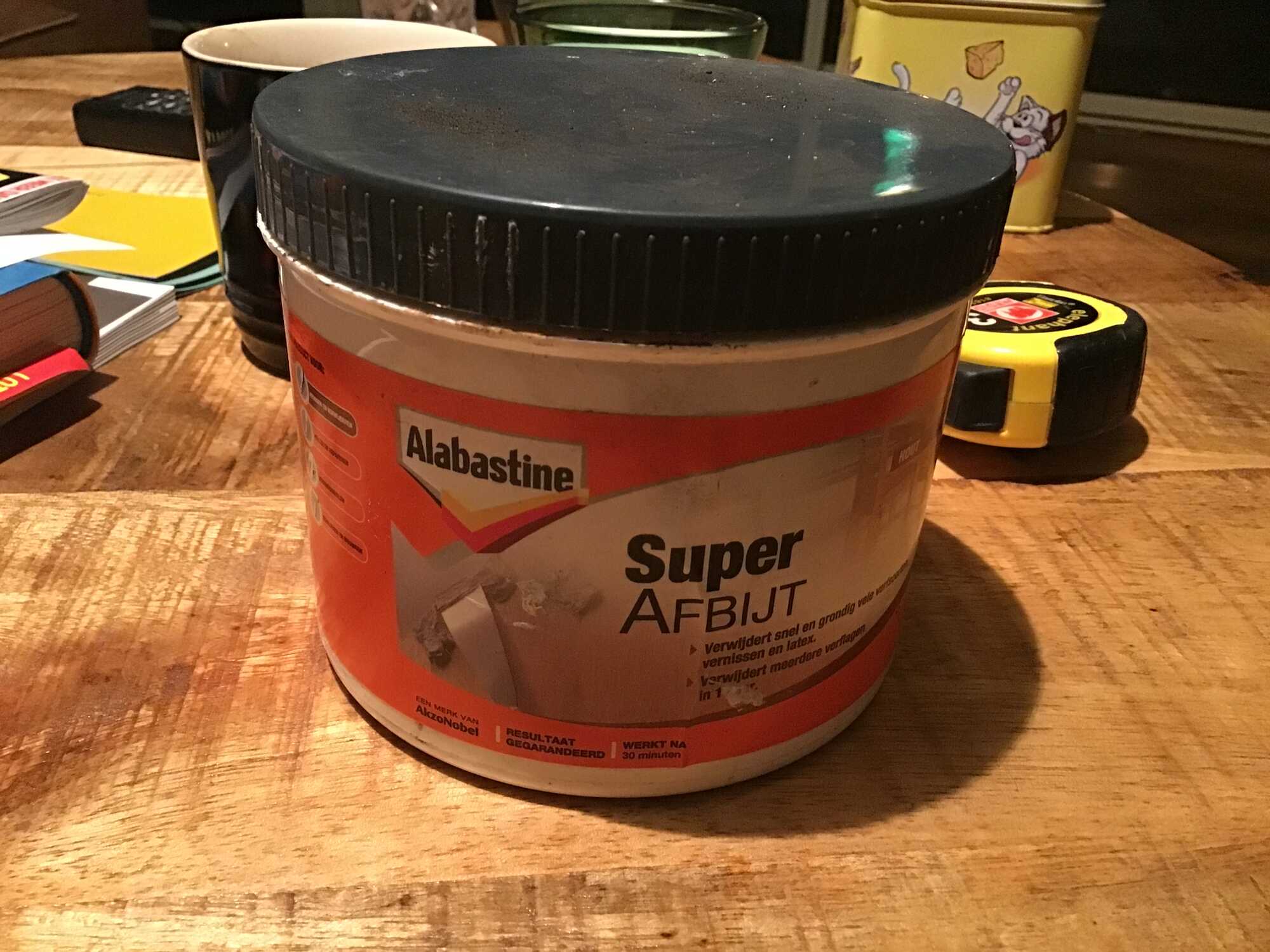 Klinkt heel drastisch. Maar de huidige Alabastine super afbijt uit de bouwmarkt is niet zo gemeen meer.