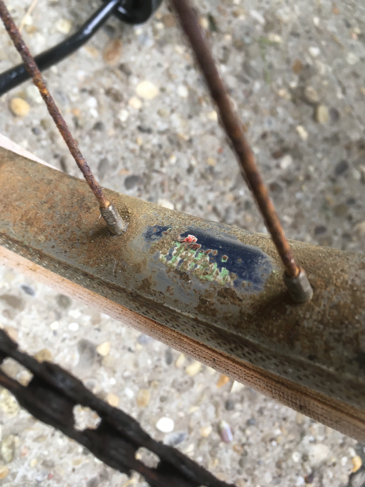 De velgen zijn overigens van aluminium en niet overgespoten. Een van de velgen lijkt de resten van een sticker te hebben, maar geen idee wat hier heeft gestaan.