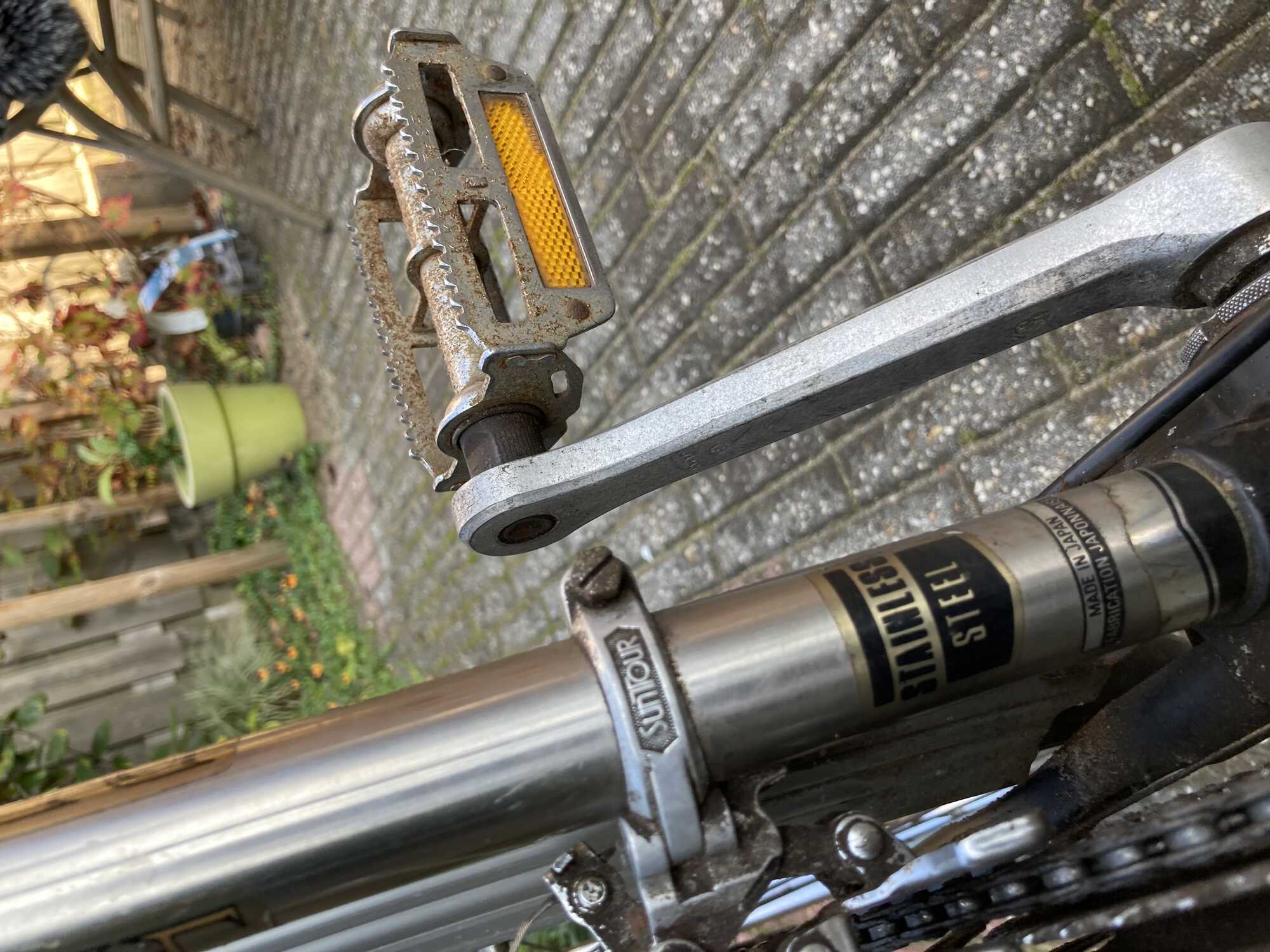 Rond '75, waarde nul/ wat een gek er voor geeft, maar evengoed een leuke fiets. Het frame is opgebouwd uit rvs buizen die in een grote mal verbonden zijn door de lugs er omheen te gieten. Technisch dus zeer interessant. Het frame is alleen idioot zwaar, wat in sommige kringen geen, in andere kringen een zeer groot bezwaar is. De achterrem is een bandrem, ook eigenzinnig