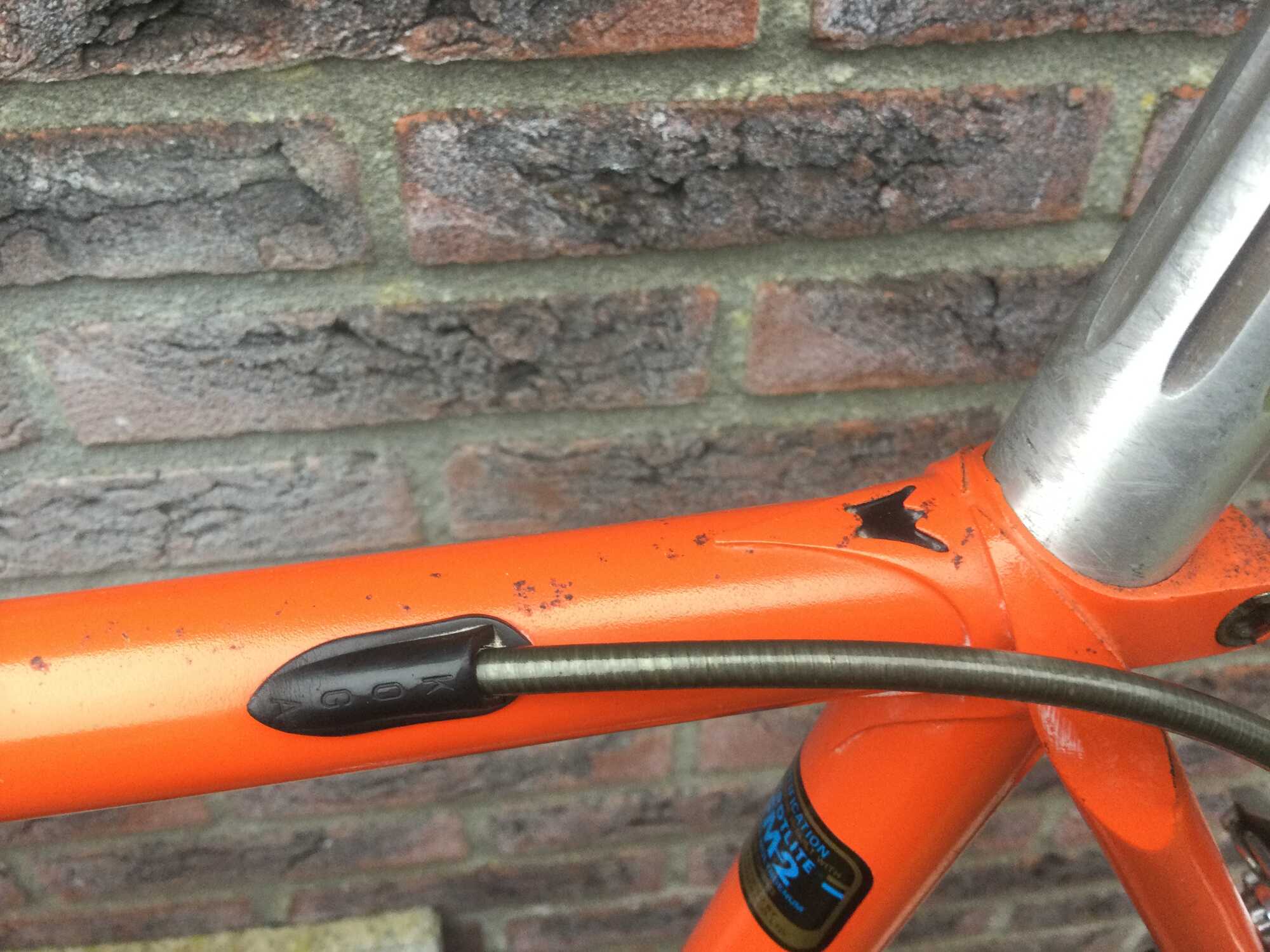 De remkabels loopt door de bovenbuis ipv er overheen. ( modificatie ?) wel met Koga Rubber geleidertjes.