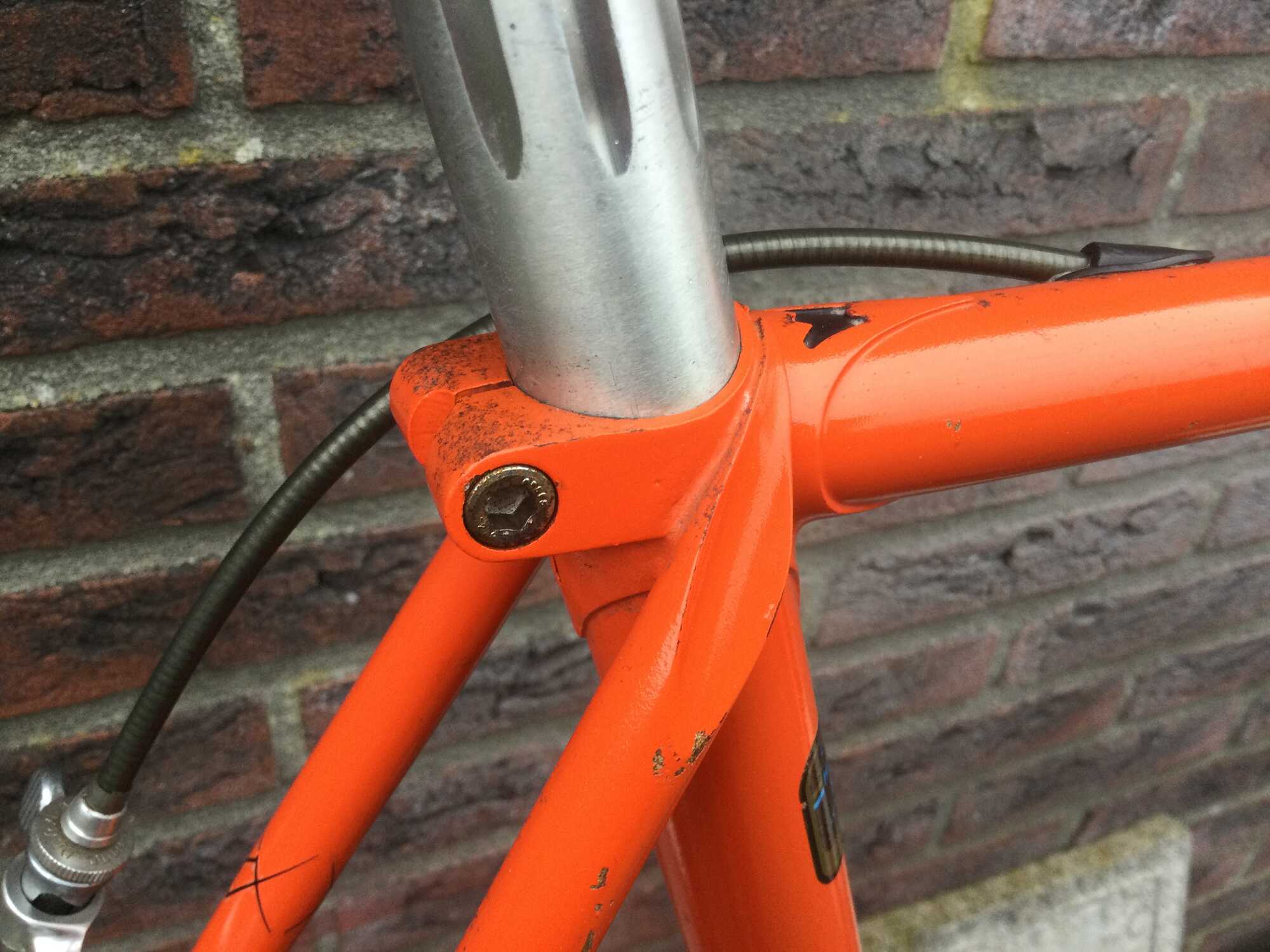 Ook de doorvoer van de remkabel door de bovenbuis klopt niet . daar zit bij de boringen altijd een versteviging plaatje boven op gesoldeerd bij koga.