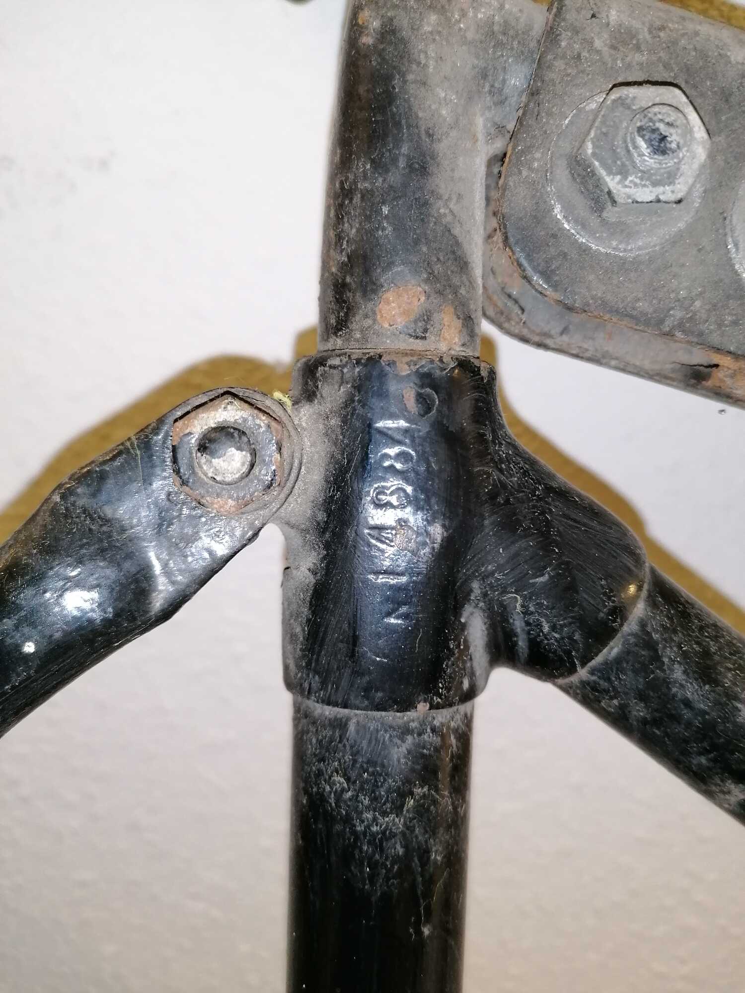 Ik kijk al een tijdje liefdevol naar kruisframe-type fietsen en nu heb ik het geluk gehad er één voor een normale prijs aan te kopen. Er stond maar een enkele foto bij de advertentie maar met behulp van rijwiel.net viel het merk terug te brengen naar een simplex of juncker. Bij het ophalen werd al snel duidelijk dat het een juncker betreft. Met behulp van informatie van verschillende forumthreads (bedankt coleine!) heb ik de fiets gedateerd op 1953. Jammer genoeg is dit niet af te leiden van de achternaaf. Ik vermoed dat de fiets ooit herbouwd is om welke reden dan ook. Er zit namelijk een 1961 sturmey archer 3-versnellingen naaf op, de velgremmen, het stuur, ... lijken mij ook niet correct. jammer genoeg is er weinig te vinden over de juncker kruismodellen op het internet. Ik ben eigenlijk op zoek naar een verkoopkrant/folder waarin de verschillende opties voor versnellingsnaven ed. te zien zijn om de fiets terug te brengen naar een 'periodecorrecte' staat. Alle info (of correcte onderdelen) zijn welkom, ik zal proberen hier de progressie bij te houden.