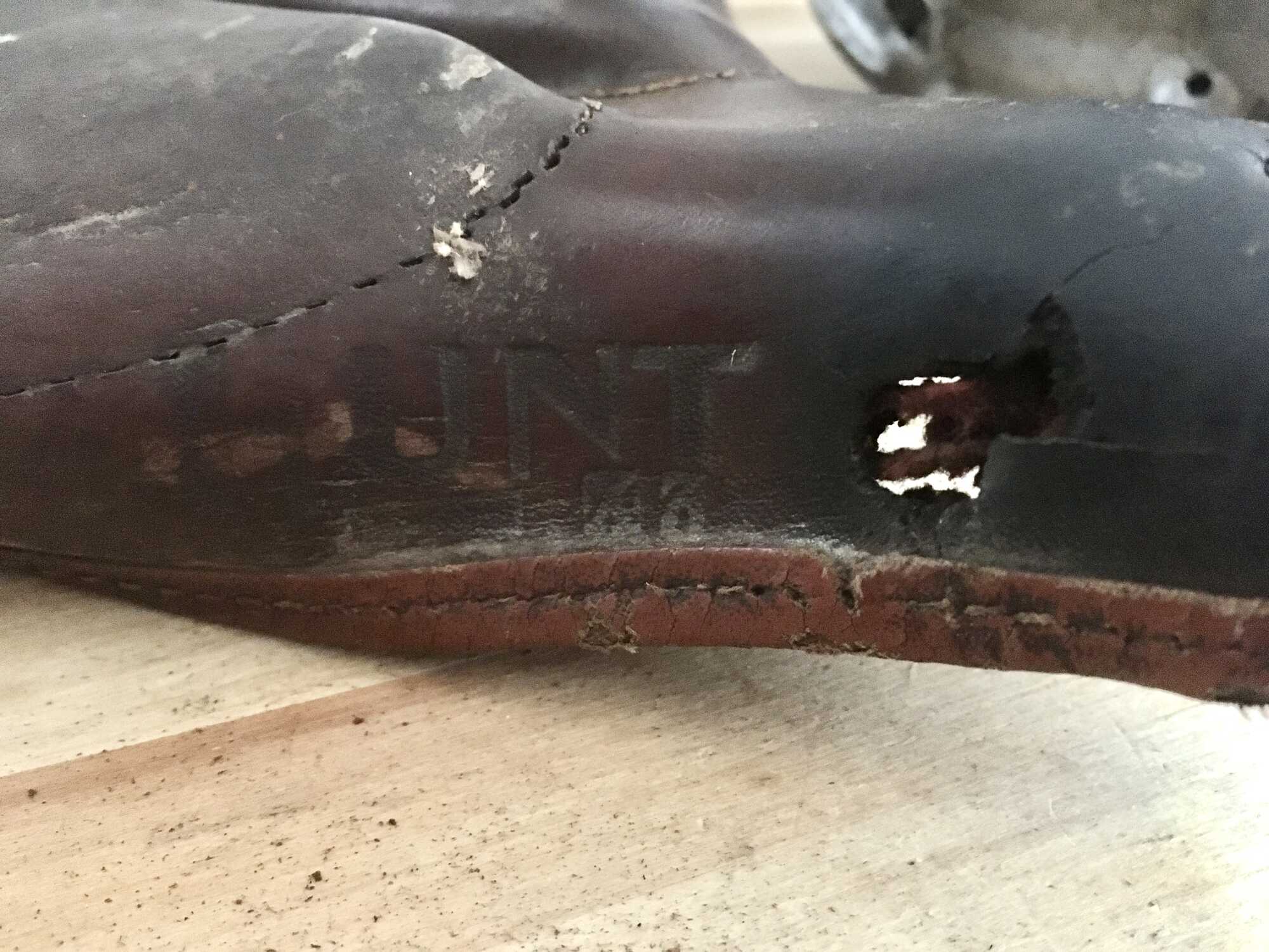 Het zadel op de foto heeft een lelijke beschadiging. Het zou moeten worden gerepareerd, stevig genoeg om een nieuwe zadelniet te kunnen bevestigen. Ik kan er leer reparatiestof achter plakken, maar dan blijft vervolgens de vraag waarmee het gat op te vullen. Heeft iemand hier ervaring mee?