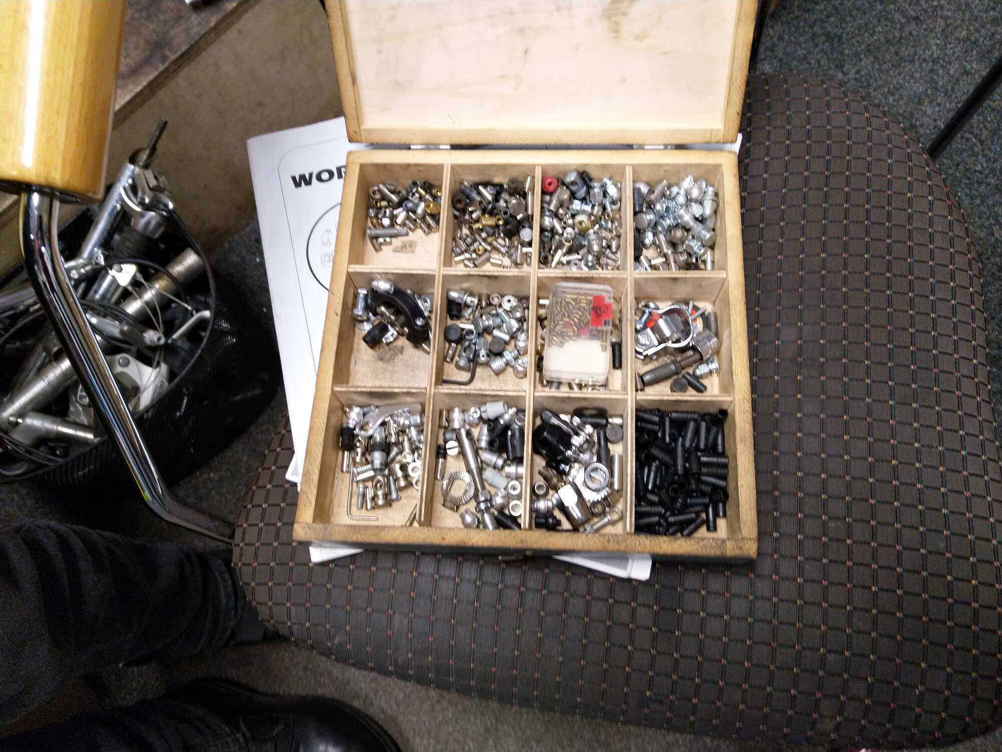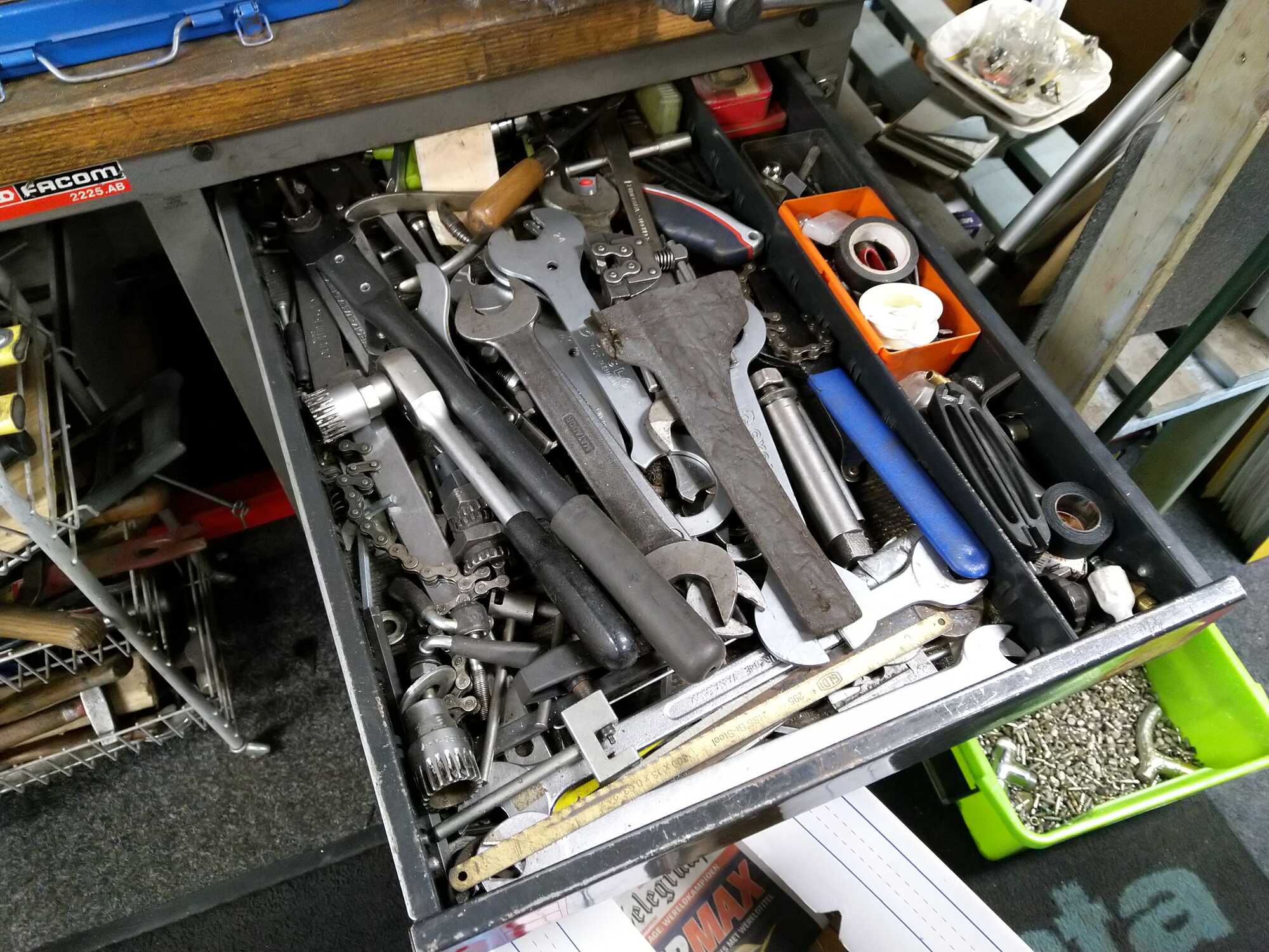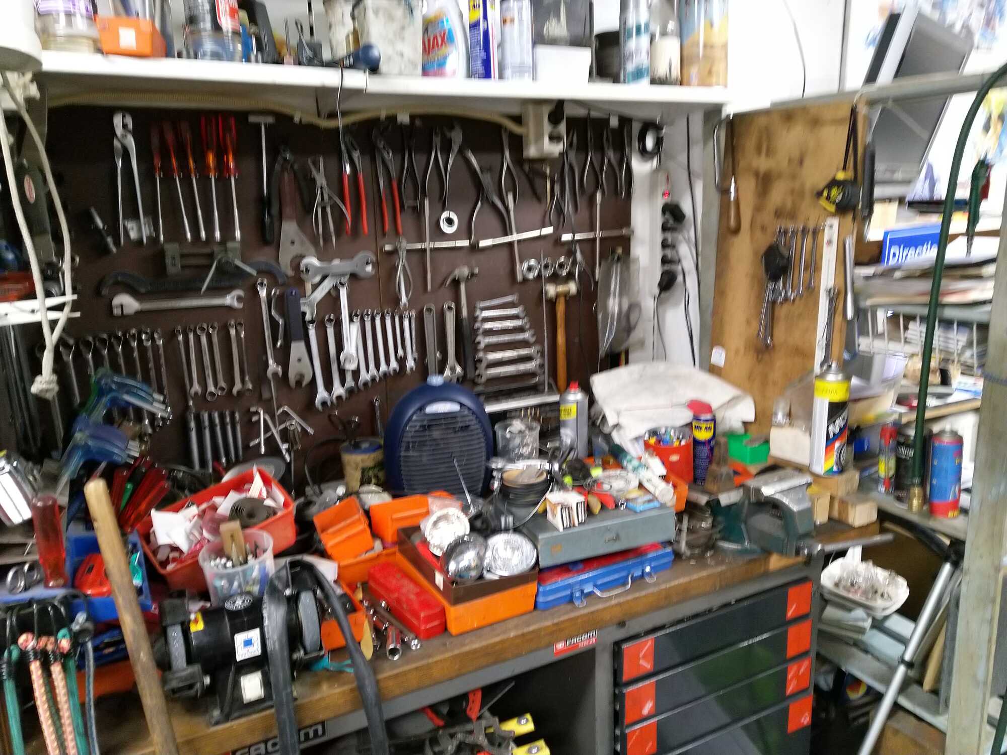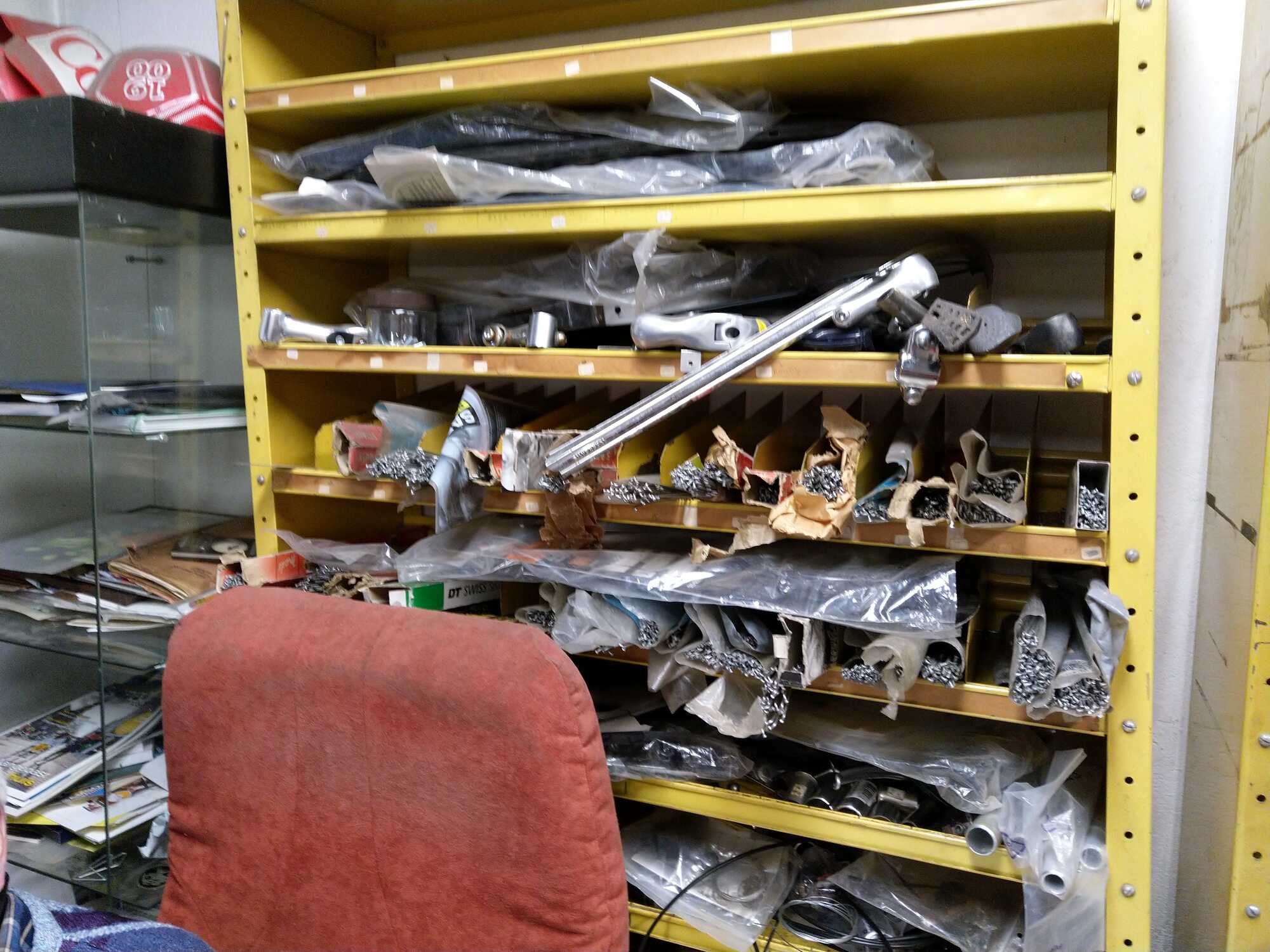 Fietsenmaker Hunting aan de Neuweg 48 te Hilversum stopt met zijn zaak en ruimt zijn werkplaats op; veel is al weg maar er zijn nog wel wat onderdelen en gereedschap waarvoor hij een koper zoekt. Bij belangstelling kun je hem bellen op tel 035-6214572. Hij verstuurt niet, dus je moet het wel komen halen in Hilversum. Hierbij wat foto's die ik hedenmorgen heb gemaakt: