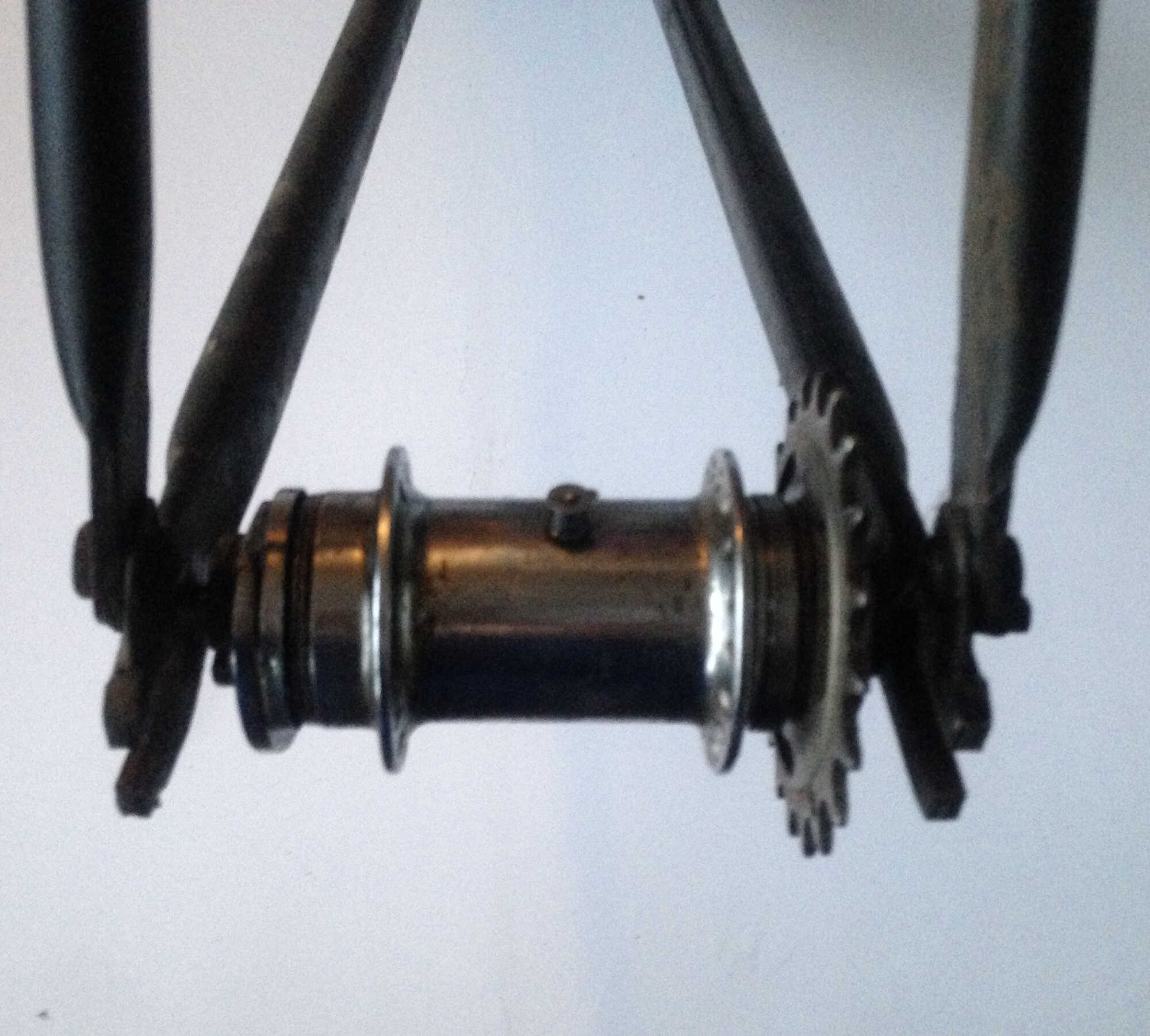 Ik heb ook een Gazelle TR uit 1956 waarbij men een Torpedo naaf monteerde met kom tandwiel en naast de remhevel een moer om de inbouw breedte een beetje op te vangen .