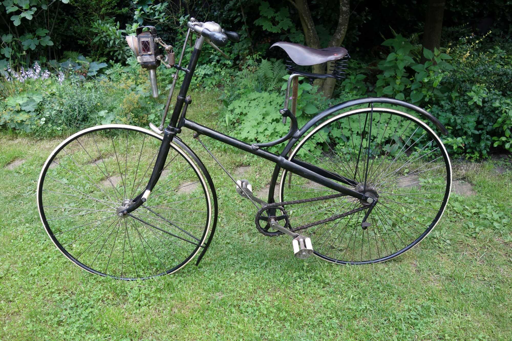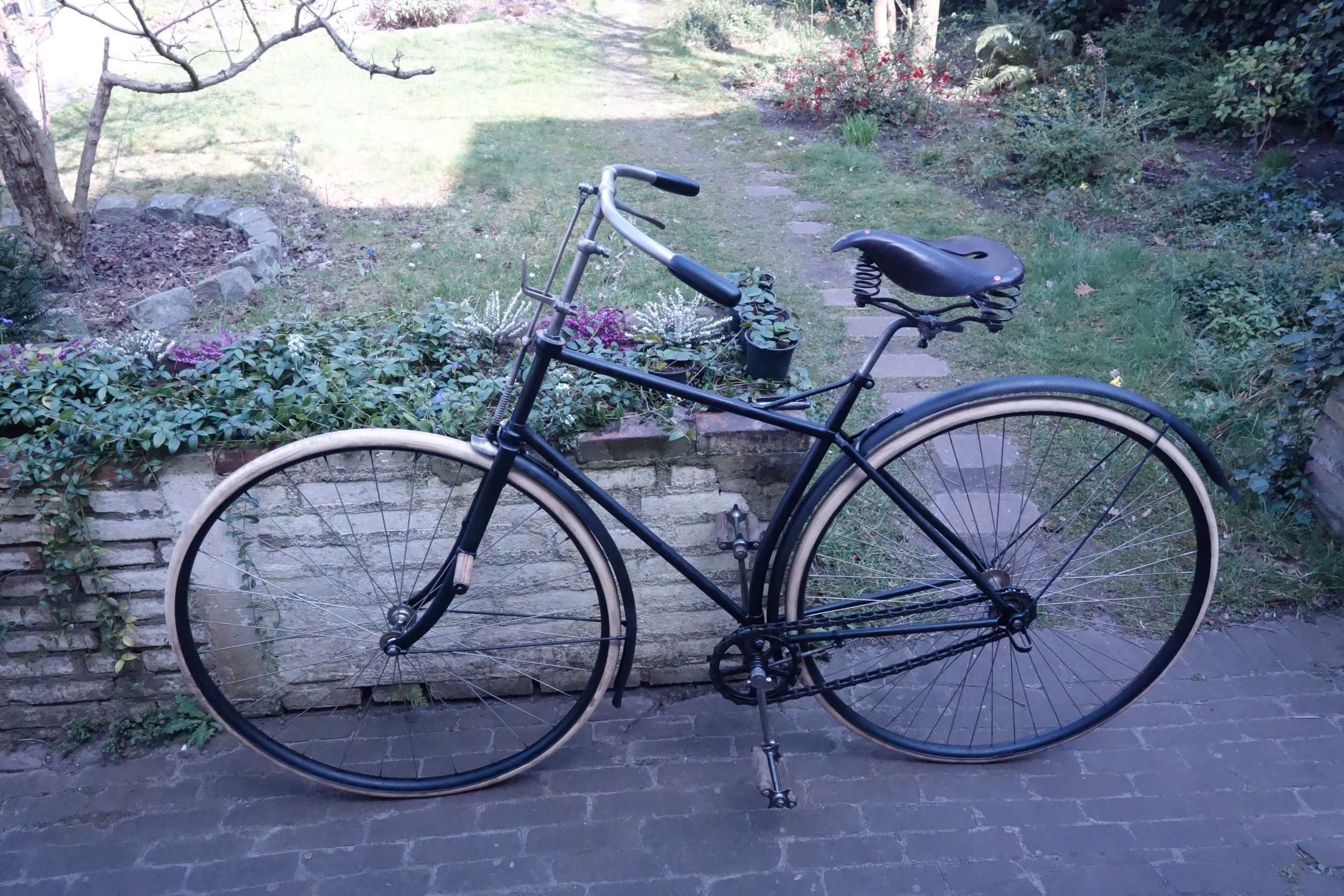 De fiets is voorzien van cuschion tyres wat wel gebruikelijk was in dat jaar (naast de dunne massieve en de eerste luchtbanden).