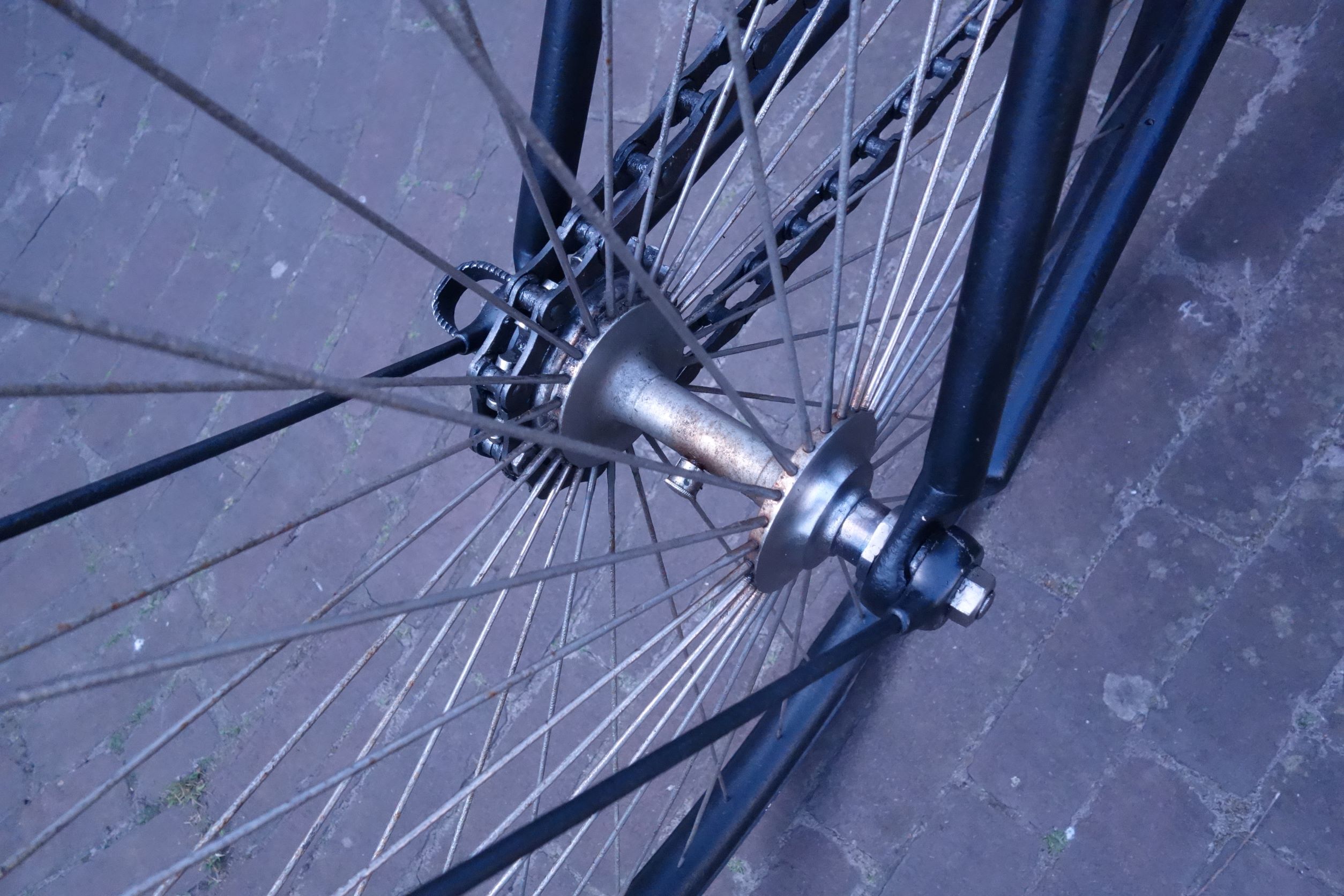 Nu oogt de fiets veel meer zo als ze gebouwd is destijds. Wat nog wel een keer moet gebeuren zijn de spaaknippels van het voorwiel.