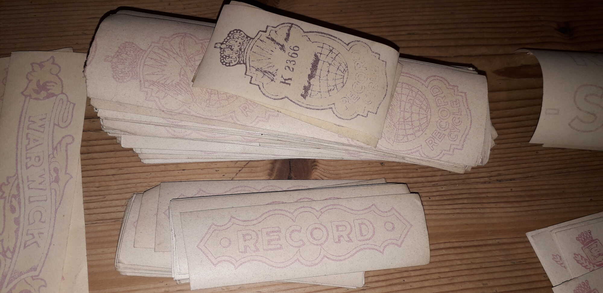 Pas geleden een Record Cycle damesfiets op de kop getikt. Bouwjaar schat ik rond 1945. Op de zadelbuis een stickertje met 'Nederlandsch fabrikaat'. De fiets is, denk ik, nog nooit de weg op geweest. Hageltje nieuw! Ik kan echter niets terug vinden over dit merk. Wie wel?