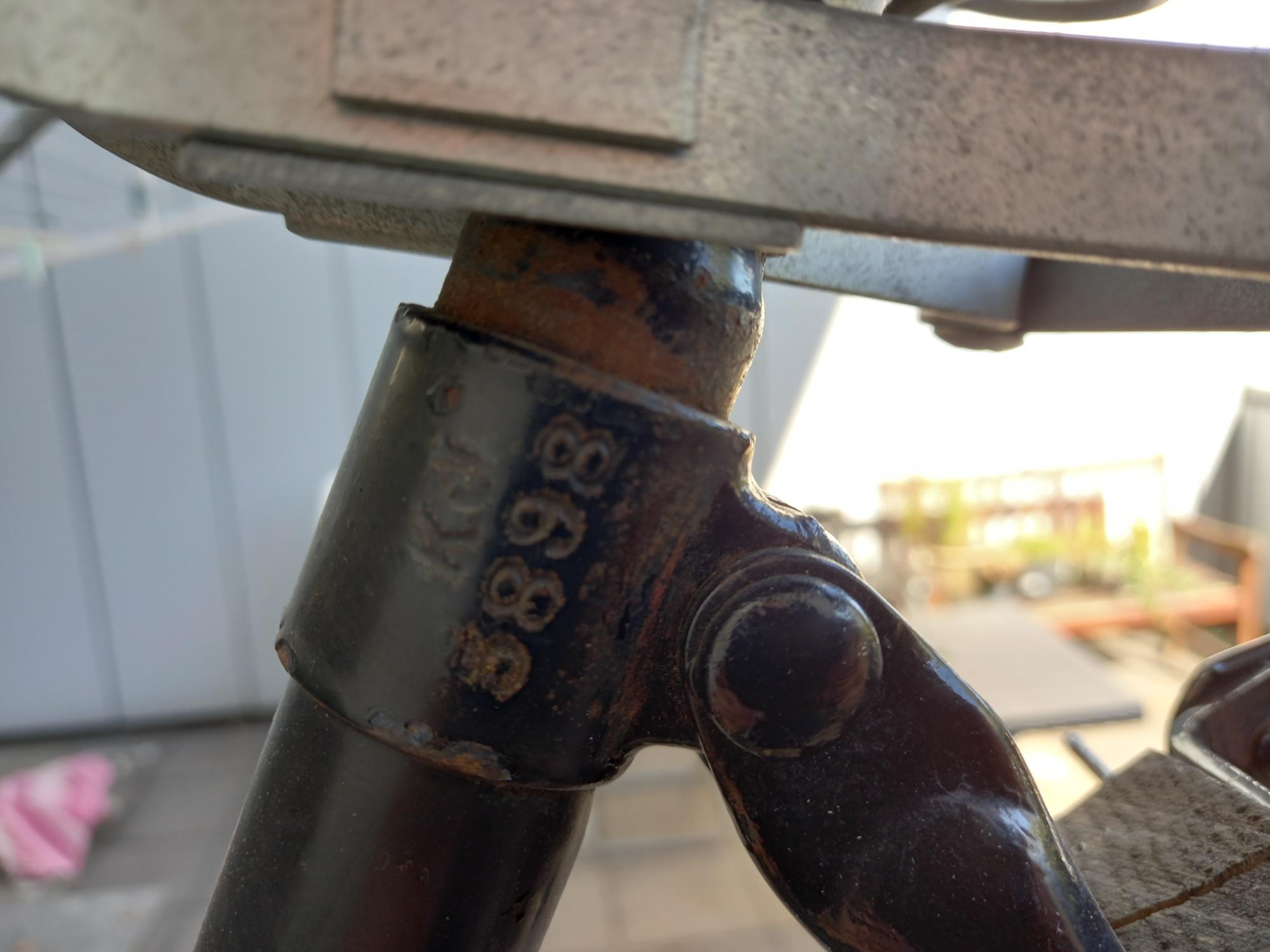 De balhoofdmoer komt van een Gazelle, dus of de lamphaak nog origineel is moet je ook maar afwachten. De bovenste lagerschaal ziet er wel origineel uit.