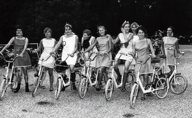 Wie weet dat we nog eens de verbinding kunnen leggen tussen de dames op de foto en de getoonde Fongers rijwielen.
