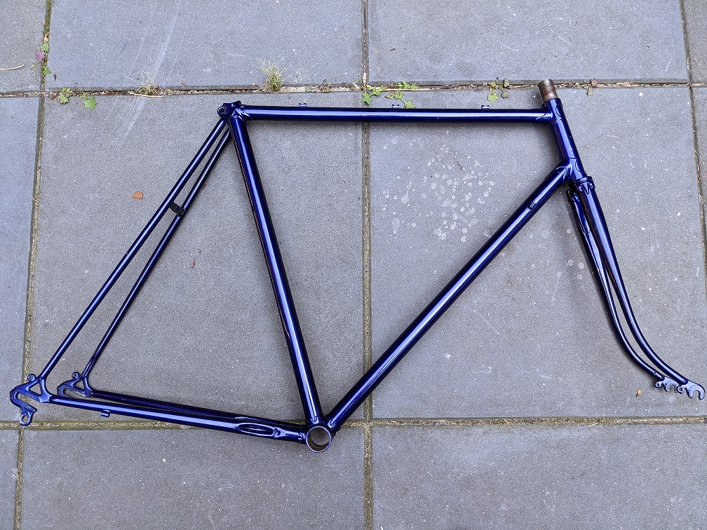 Er zijn/lijken die pleiten voor een Locomotief uit de Amsterdamse periode van framebouwer Bertus Slesker, 60's. Zoals de verschillende typen Nervex lugs. De luxere Professional lugs aan de achterkant (zadel en bracket) en de eenvoudigere aan het balhoofd boven en onder. Ik heb begrepen dat Slesker een hekel had aan de opstaande rand die de balhoofdlugs van de Professional hadden. Slesker (en met hem veel framebouwers uit die tijd) slepen dat er af. De aangesoldeerde stukken zijn inderdaad van veel later. Alhoewel Locomotief als een van de eersten de derailleurverstellers al op de onderbuis soldeerde. Wel werd de hele nok erop gesoldeerd zowat. Derailleurkabels onder de bracket is van zeker meer dan een decennium later. De potloodeinden van de staande achtervorkbuizen zijn bij die van mij toch wat spitser. De Ekla-D voorvorkkroon werd weliswaar door meerdere bouwers gebruikt (o.a. RIH). Of de verstevigingsribben aan de binnenkant typisch Locomotief zijn, durf ik niet te zeggen, die van mij heeft ze wel/ook.. De lange Campagnolo patten zijn ook niet echt uniek.