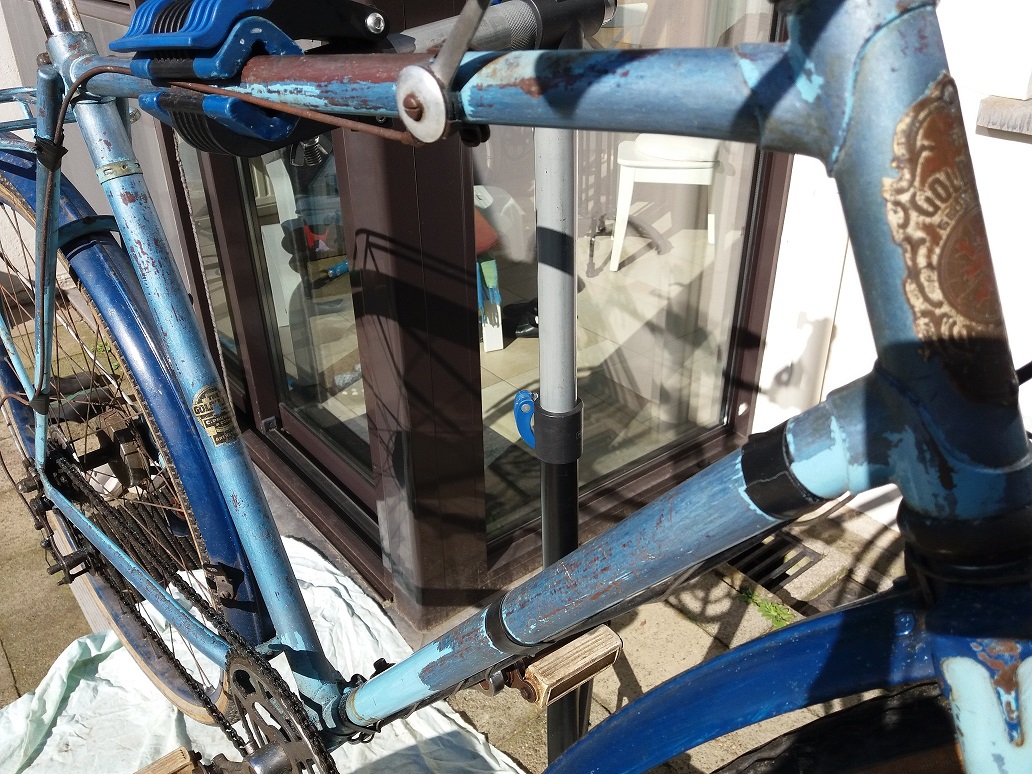 De fiets was zoals dikwijls voorvalt overschilderd,