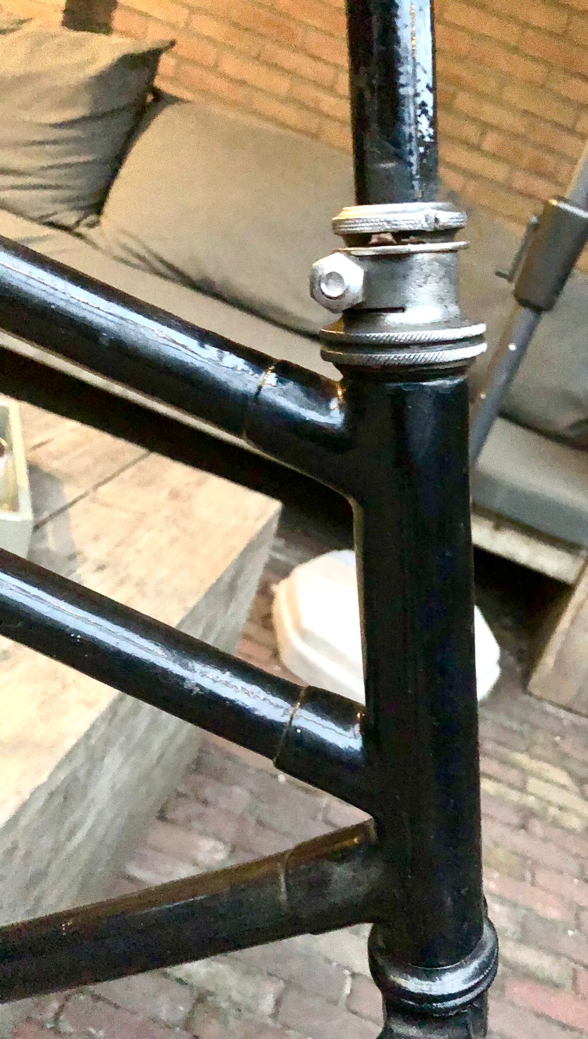 Een laatste detail dat opvalt is dat de horizontale buizen dunner zijn dan gebruikelijk voor een (latere) transportfiets: