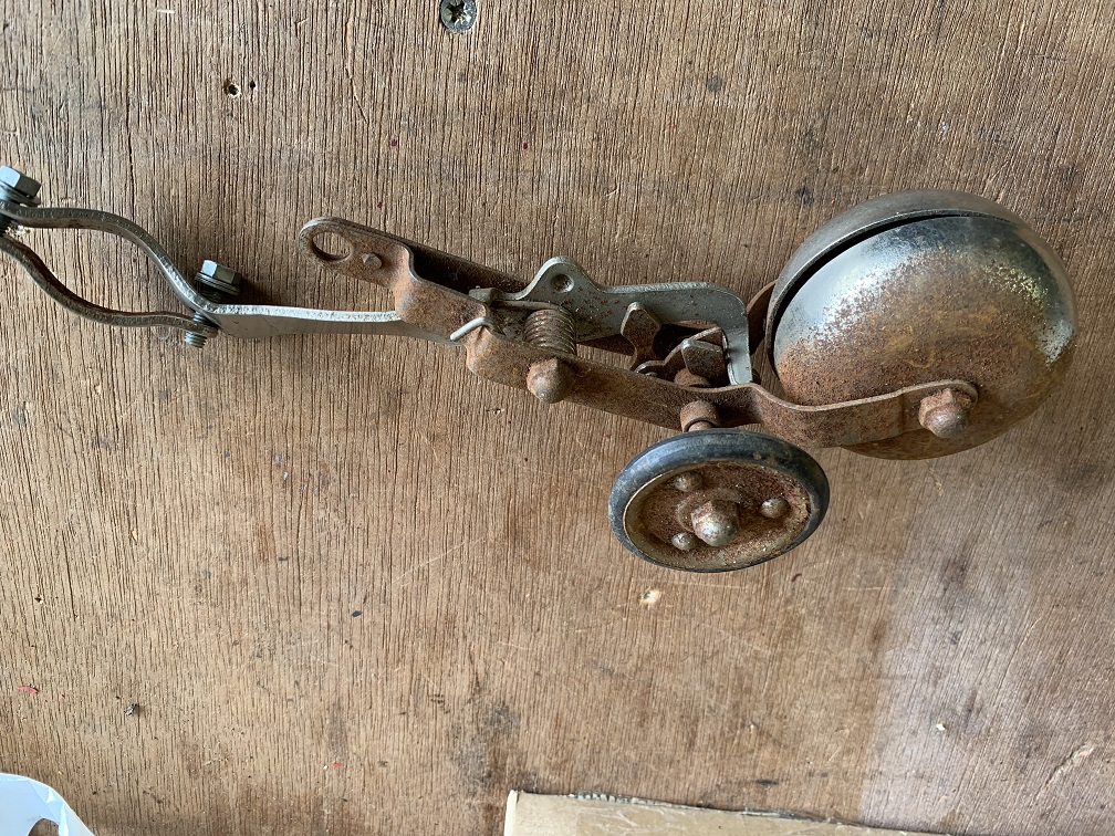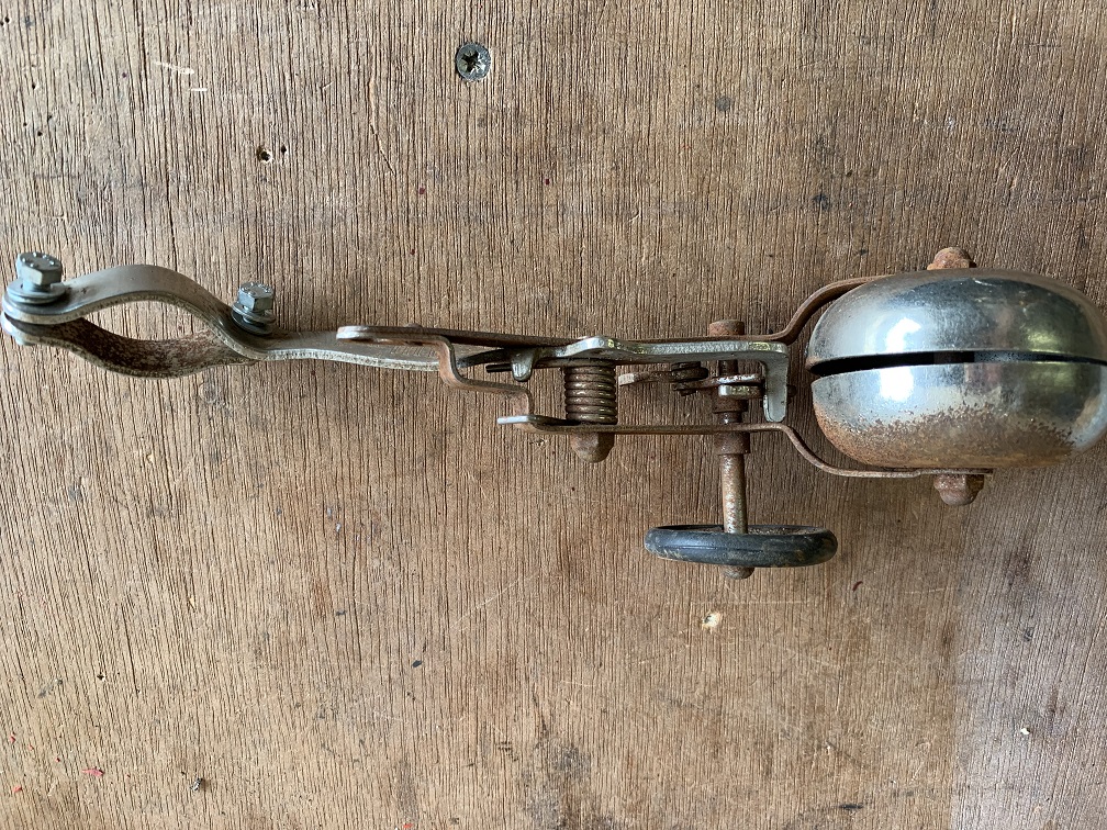 Hallo. Ik heb twee bellen gevonden met een vreemd mechanisme. Volgens mij moet de bel met een wieltje tegen het fietswiel aan gedrukt worden, om zo te gaan rinkelen. Wie weet er meer over deze bel? Zie foto's.