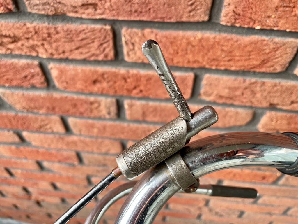 Inderdaad een versteller voor drie-versnellingsnaven.ReinvB schreef: ↑16 sep 2022, 20.16 Het is niet mijn fiets, maar volgens mij werd deze versteller gebruikt voor SA drie versenllingsnaven op fietsen waar een buisversteller niet past zoals damesfietsen. Volgens mij gebruikt zo tussen 1903 en 1950, maar er zullen detailverschillen waar de kenners je op kunnen wijzen, maar de aanwezigheid van de versteller op zich brengt je niet veel dichter bij een dame. Wel een uitzonderlijk mooi bewaard gebleven fiets !