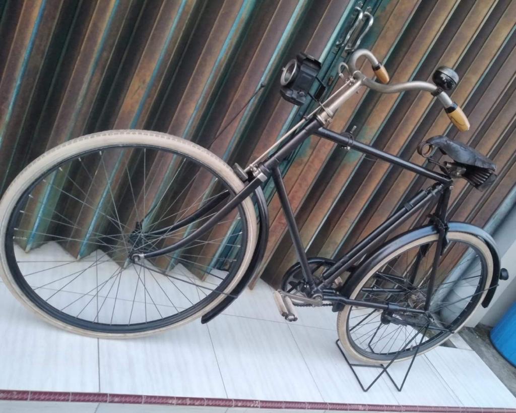 Al sinds vorig jaar November heb ik bijgevoegde foto opgeslagen op mijn telefoon. Spijtig genoeg is het nog niet gelukt om meer informatie (uit Indonesië) over dit stevig gerestaureerde rijwiel te krijgen.