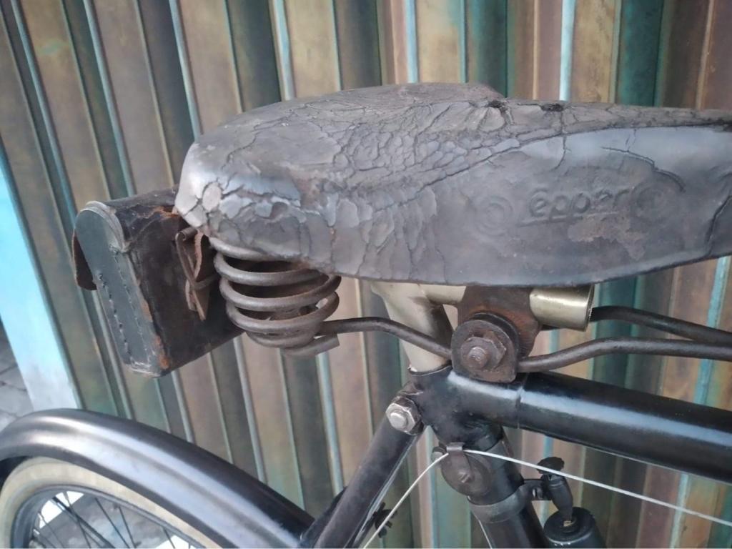 Fiets is van eind 1904. Er is wel veel aan geprutst; stuur en rem lijken origineel maar zijn dat niet.