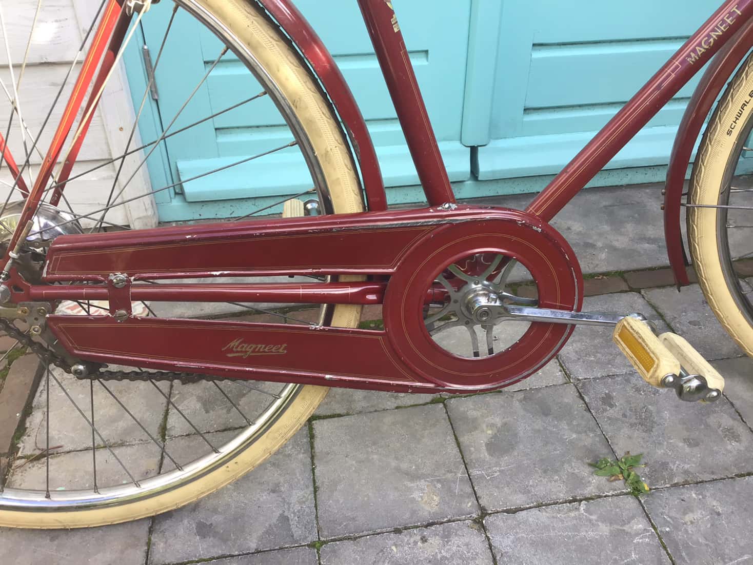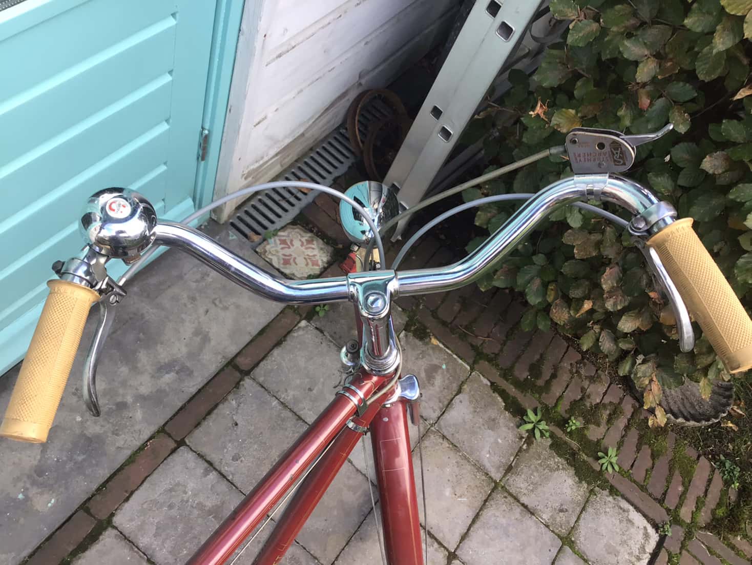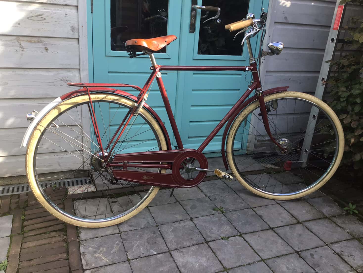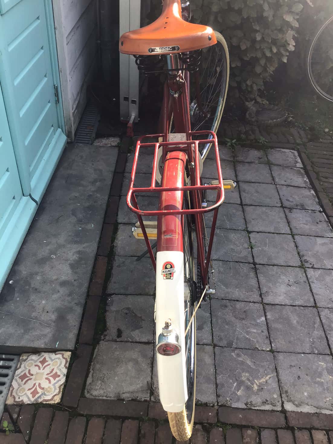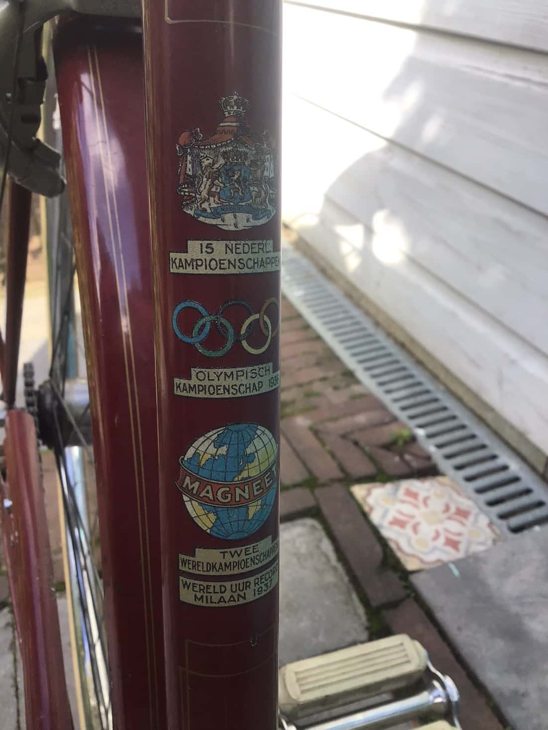Op zoek naar een Engelse 3 speed kwam ik twee jaar geleden op marktplaats een donkerrode Magneet tegen met nog bijzonder gave transfers. Slechte foto’s maar dicht genoeg bij om even te gaan kijken.