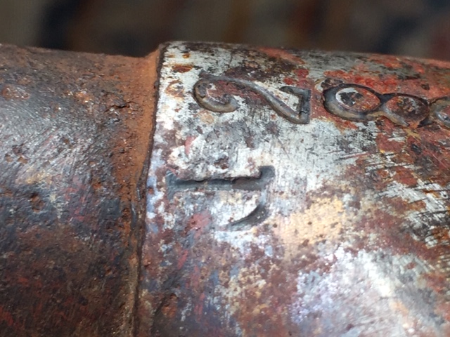 Nu heb ik hier een frame van een transportfiets of misschien een dienstfiets met een hele zware trapas type BSA met een diameter van 17,4mm waar een framenummer met ernaast de letter D (?) in is gestempeld maar die staat ondersteboven.