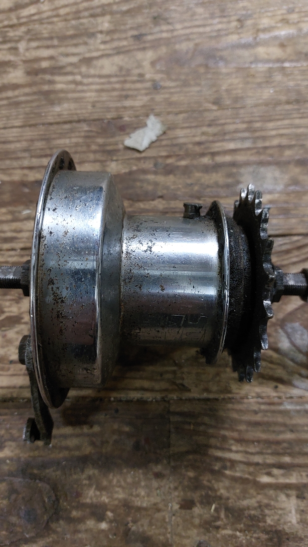 - Een Gazelle voornaaf met trommelrem, het moet het oudere type zijn waarbij de trommel met klinknagels aan de naafhuls zit bevestigd. Graag nog wel met wat chroom erop, maar hoeft niet perfect te zijn. Onderaan een foto van de achternaaf, zou mooi zijn als hij hierbij past qua staat