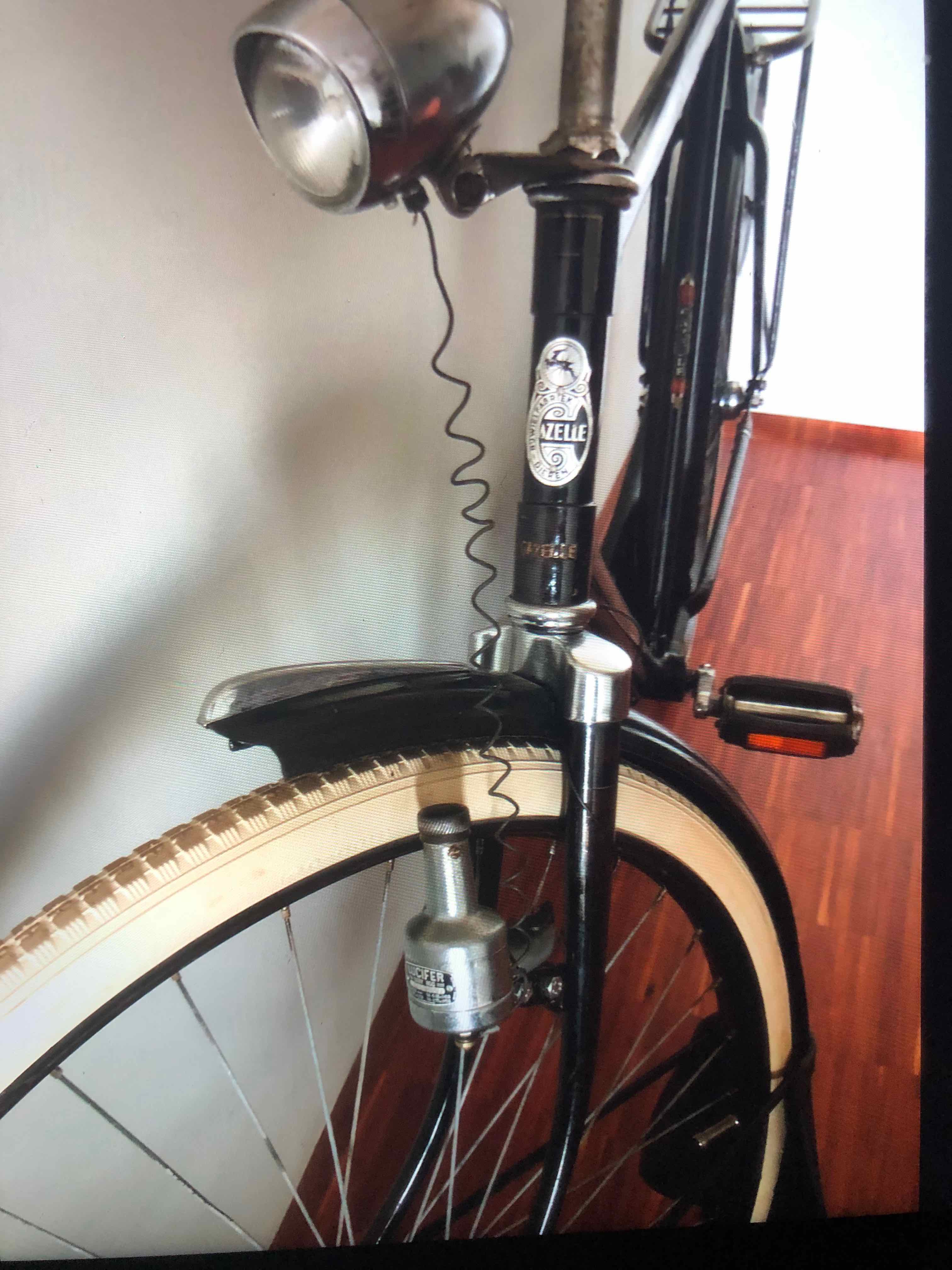 Mijn oefenfiets, een Gazelle tour 8 uit 1962 is klaar. Met dank aan dit forum voor de technische tips, mooie klassieke banden en passende verlichting.