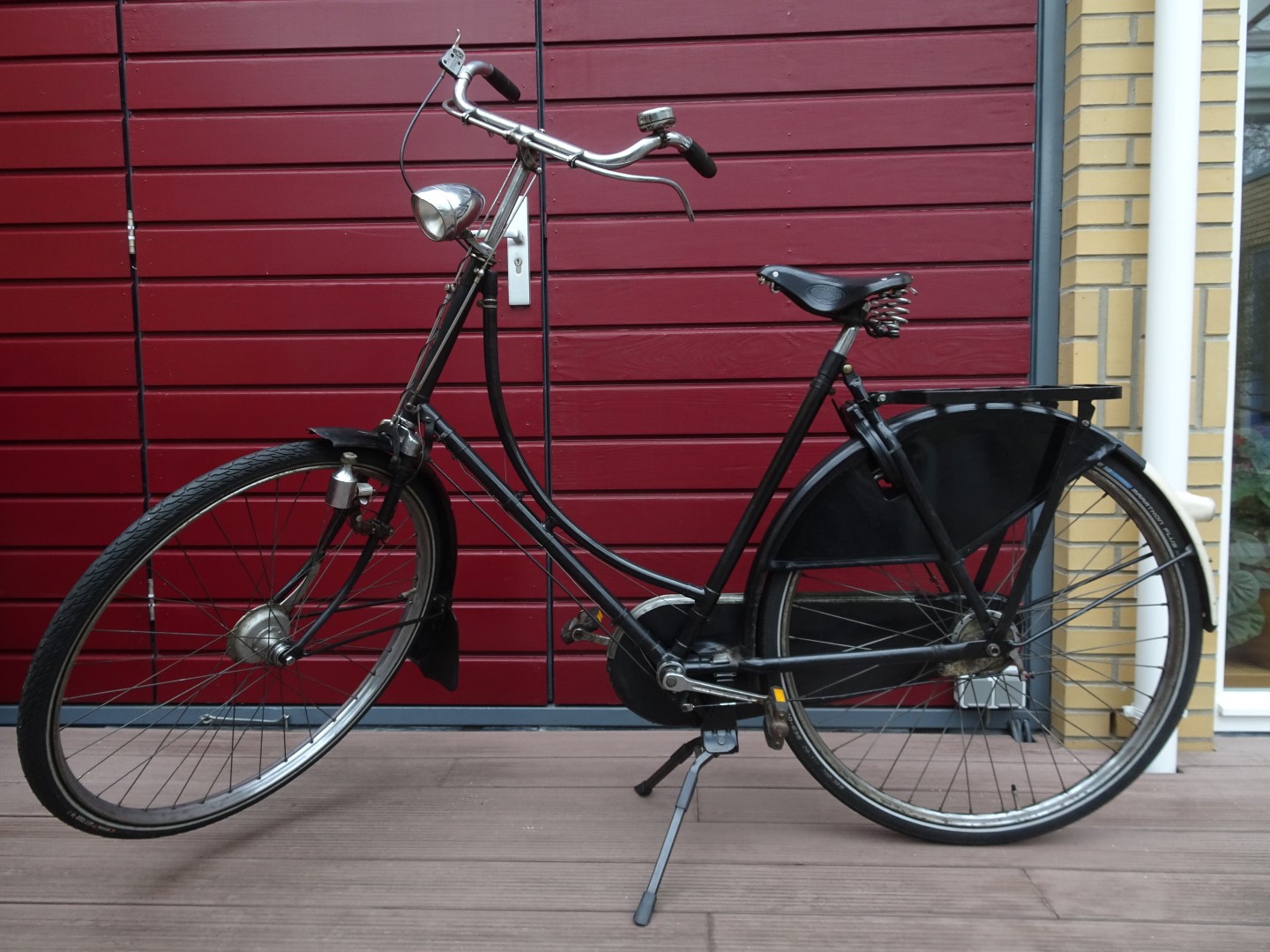 O.a. Lucifer koplamp en (niet origineel) Brooks leren zadel. Uiteraard zijn in ieder geval de 2-benige standaard en het AXA-ringslot ook niet origineel, en over de bagagedrager heb ik mijn twijfels.