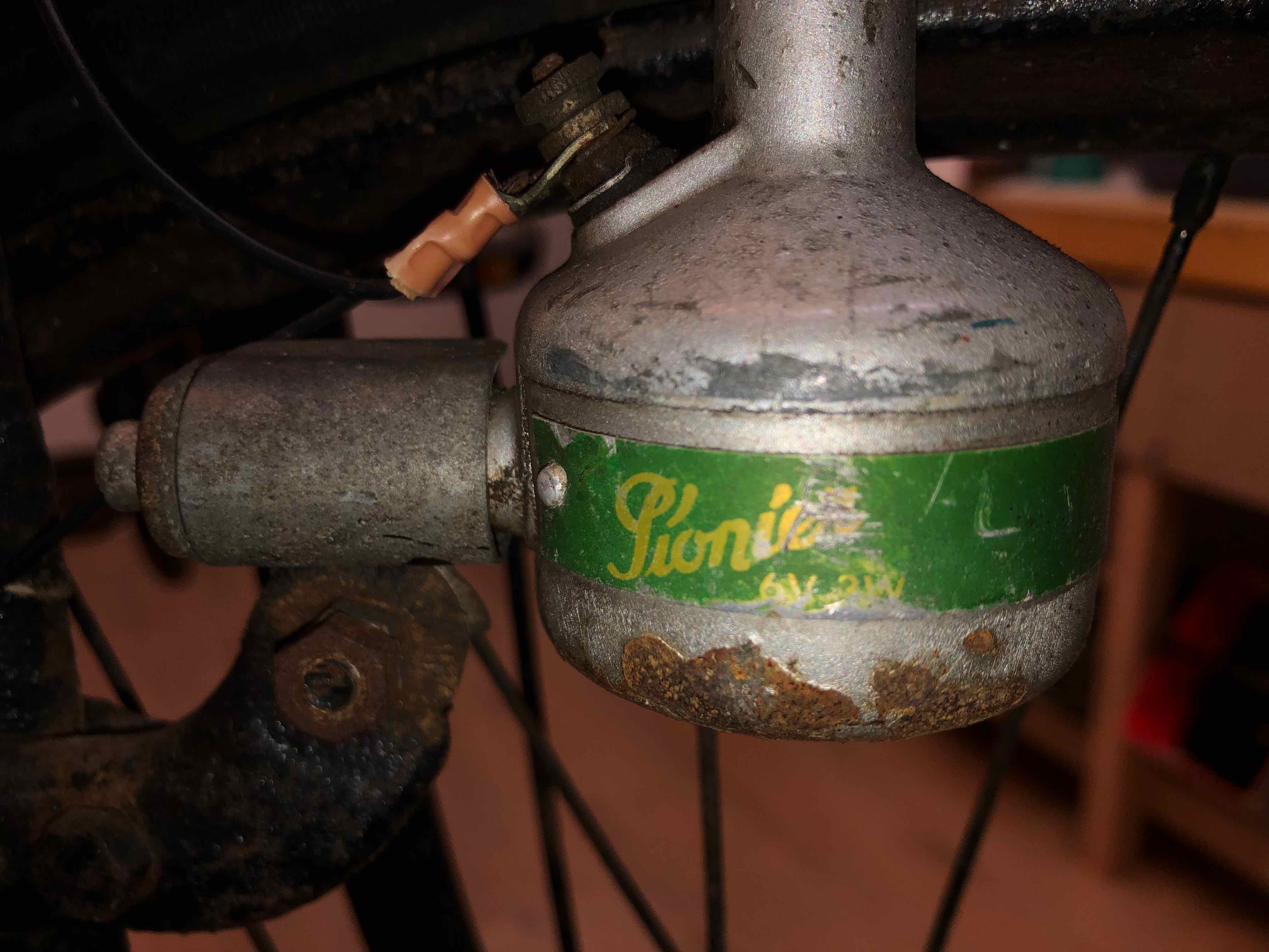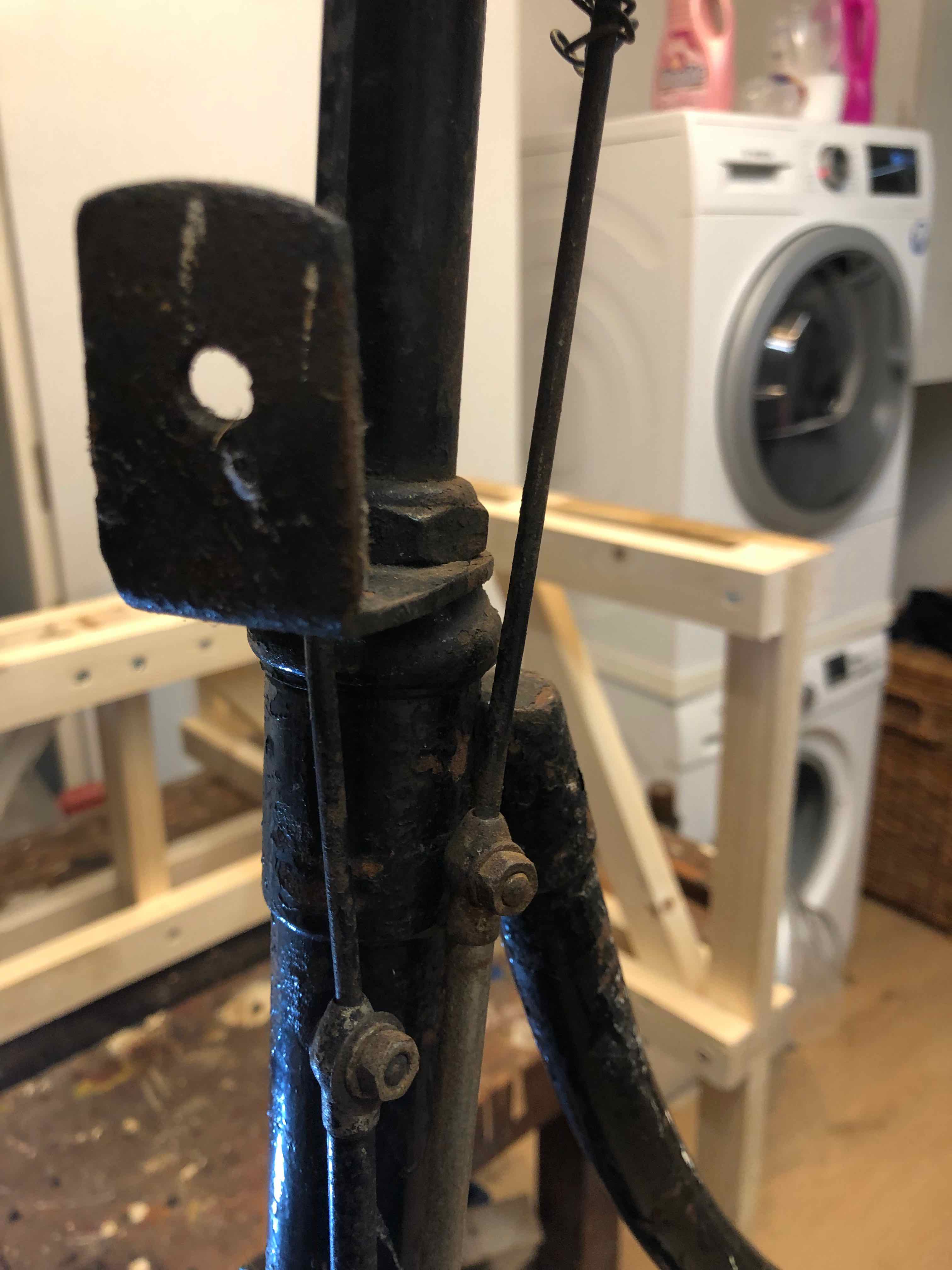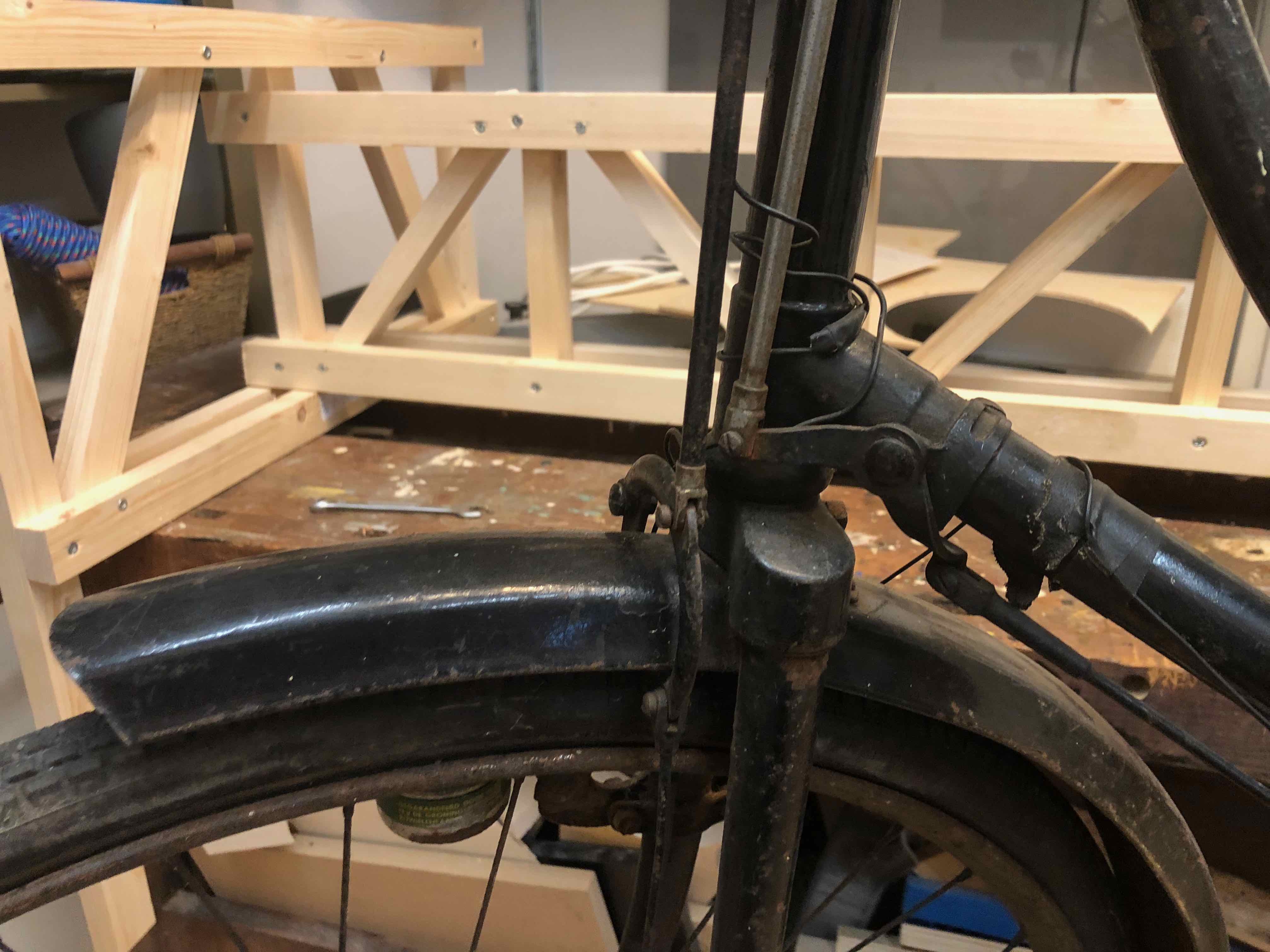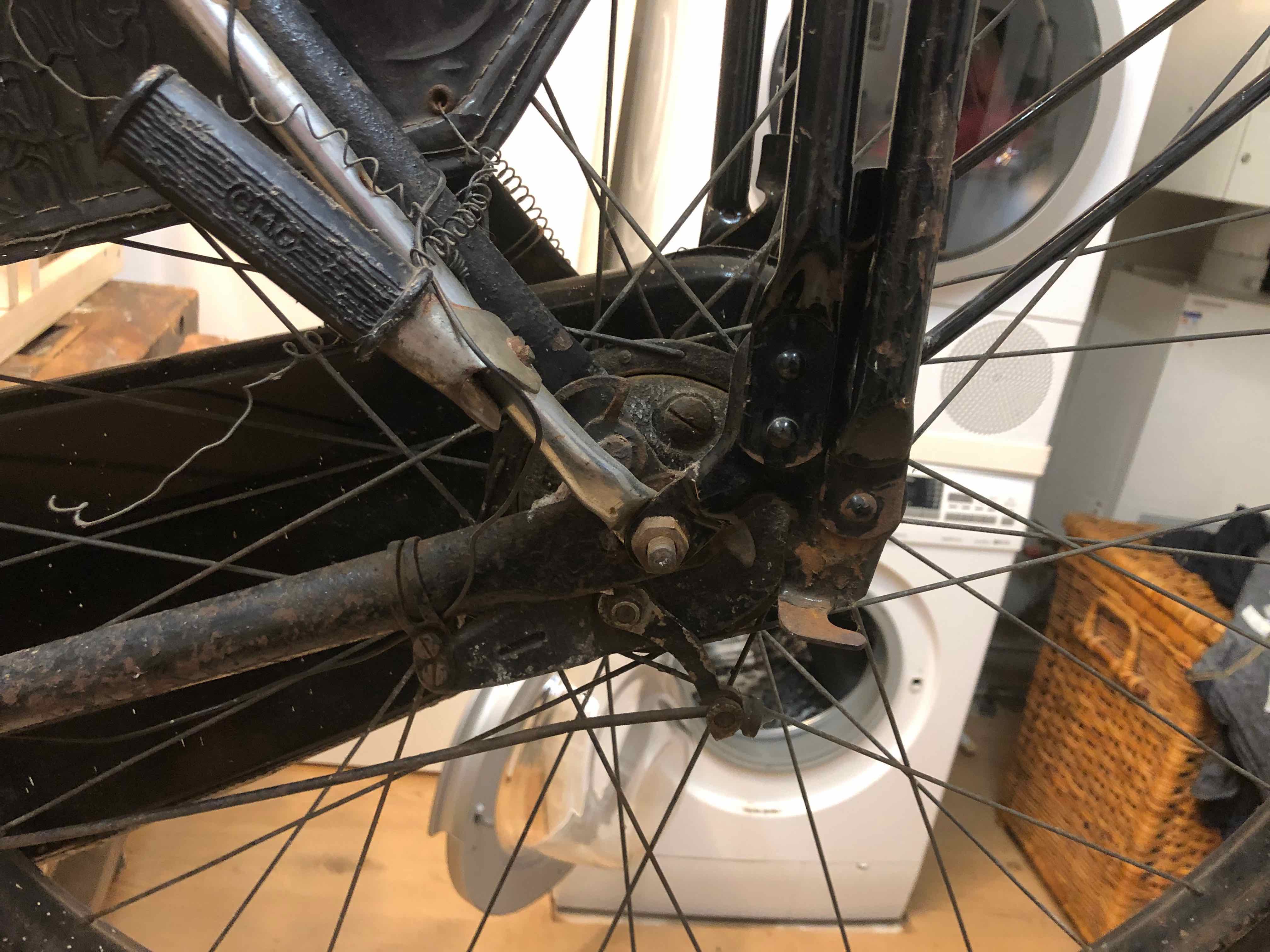 Celluloid stuur, zo te zien SA trommelnaven, dit is er wel een van voor de oorlog. Wel al een hoop aan vervangen, in elk geval spatborden.