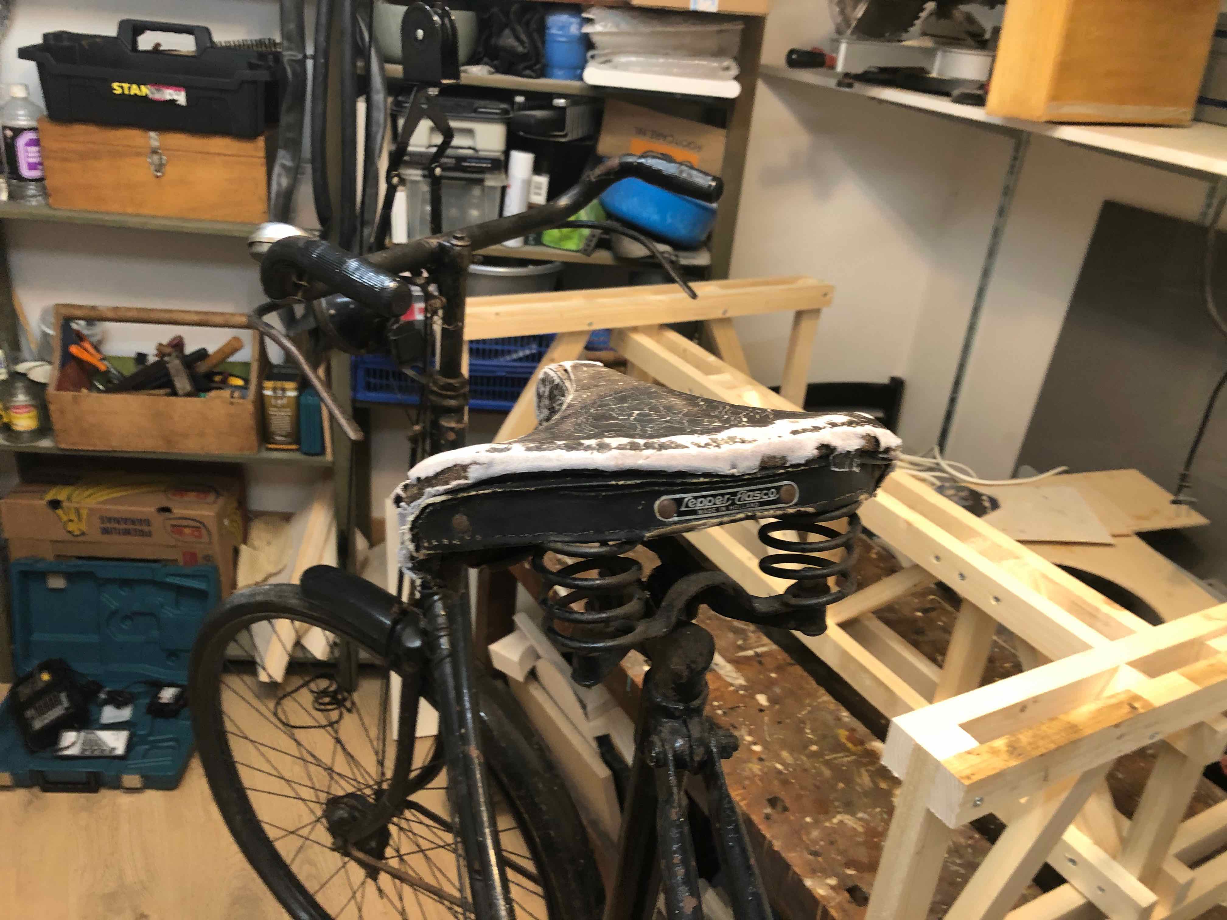 Dat kan hij doen,er is weer plek.Vanmiddag het Gazelle tandem frame bij Jan opgehaald.