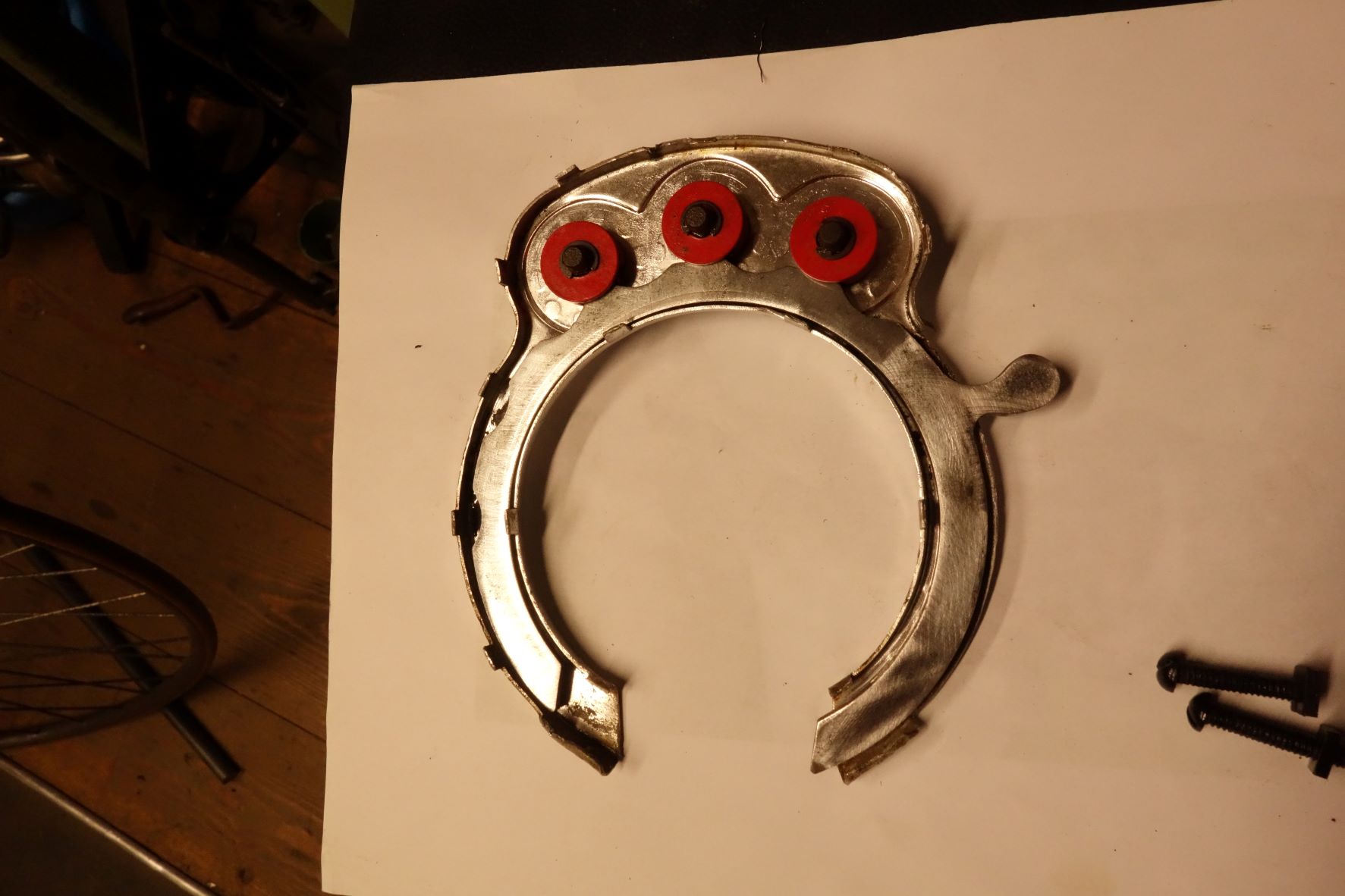 Aan ieder wieltje zit een plat vlak dat de beugel vrij geeft. De asjes van de selectie knoppen zijn zeskantig en de rode schijfjes