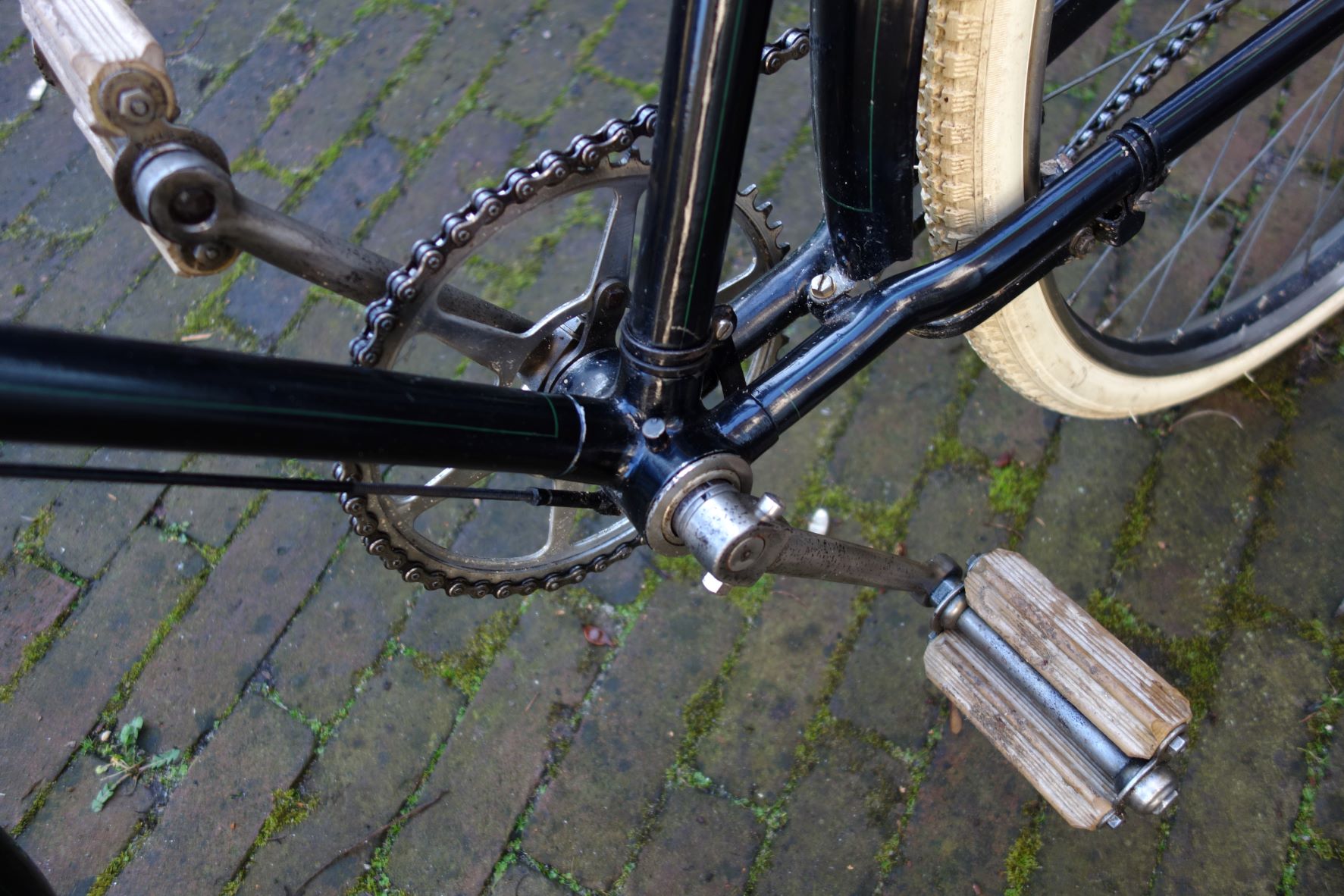 De fiets stamt uit 1923 en is voorzien van een S.A. K naaf.