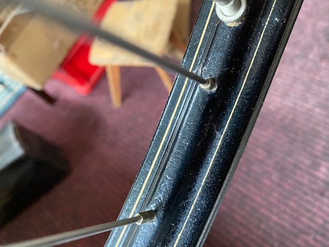 Een en ander staat op een oude velg die geschilderd is?